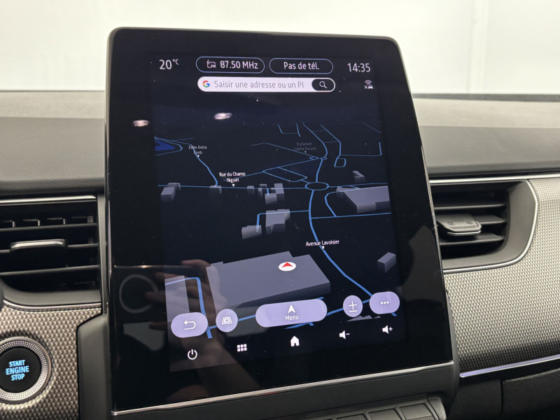 Aérateurs aux places AR / Alerte de distance de sécurité / Alerte de survitesse combinéà la vitesse limite de la navigation / Alerte d'oubli de ceinture de sécurité / Allumage automatique des phares et des essuis-glace avec capteur de pluie et de luminosité / Avertisseur de sortie de stationnement / Banquette AR avec accoudoir central / Boitier connect AIVC / Bouton d'appel d'urgence R-Call / Carte Renault avec accès et démarrage mains libres avec fermeture à l'éloignement / Commutation automatique des feux de route/croisement / Compartimentage de coffre / Compartimentage de coffre / Coques de rétroviseurs extérieures ton caisse / Easy link avec écran tactile 9.3", navigation, réplication smartphone, Bluetooth / Eclairage d'ambiance / Feux de jour à LED avec signature lumineuse C-Shape / Freinage actif d'urgence avec détection piétons et cyclistes / Harmonie intérieure foncée / Indicateur de changement de vitesse / Jantes alliage 18" Pasadena diamantées noires / Kit de gonflage et de réparation des pneumatiques / Lève-vitres AR électriques avec fonction anti-pincement / Programme eco mode / Projecteurs AV full LED Pure Vision / Purificateur d'air / Renault Multi-sense / Rétroviseur intérieur électrochrome / Sellerie textile enduit grainé-tissu Noir Titane / Système ISOFIX (i-Size) aux places AR (latérales) / Tableau de bord avec écran numérique couleur 7'' / Volant cuir pleine fleur /