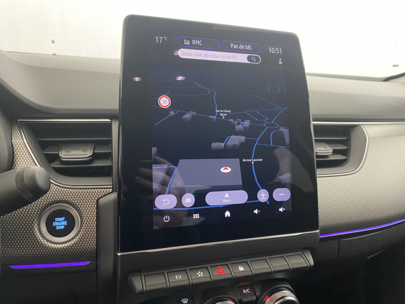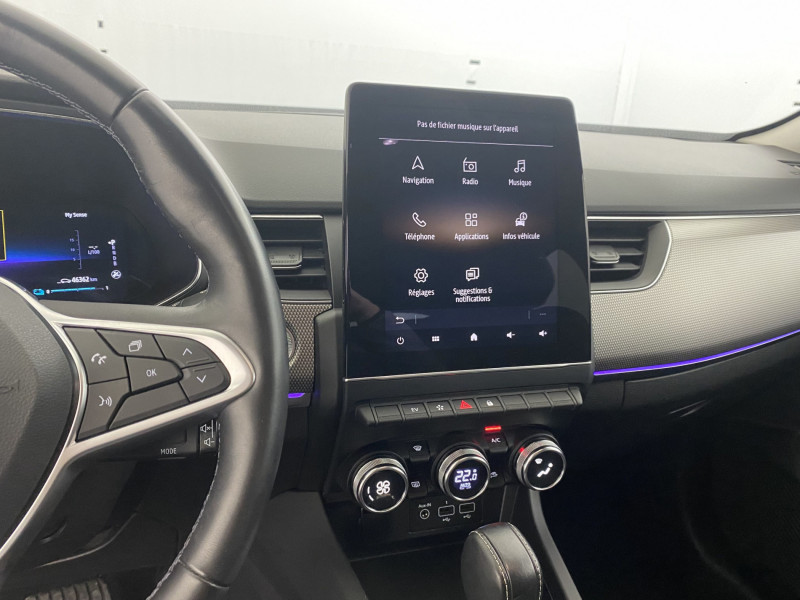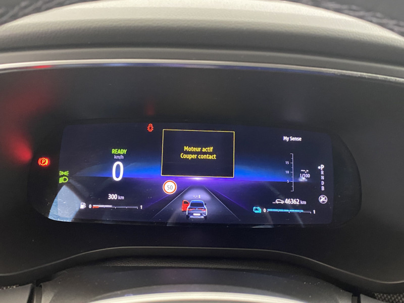 Aérateurs aux places AR / Alerte de distance de sécurité / Alerte de survitesse combinéà la vitesse limite de la navigation / Alerte d'oubli de ceinture de sécurité / Allumage automatique des phares et des essuis-glace avec capteur de pluie et de luminosité / Avertisseur de sortie de stationnement / Banquette AR avec accoudoir central / Boitier connect AIVC / Bouton d'appel d'urgence R-Call / Carte Renault avec accès et démarrage mains libres avec fermeture à l'éloignement / Commutation automatique des feux de route/croisement / Compartimentage de coffre / Compartimentage de coffre / Coques de rétroviseurs extérieures ton caisse / Easy link avec écran tactile 9.3", navigation, réplication smartphone, Bluetooth / Eclairage d'ambiance / Feux de jour à LED avec signature lumineuse C-Shape / Freinage actif d'urgence avec détection piétons et cyclistes / Harmonie intérieure foncée / Indicateur de changement de vitesse / Jantes alliage 18" Pasadena diamantées noires / Kit de gonflage et de réparation des pneumatiques / Lève-vitres AR électriques avec fonction anti-pincement / Programme eco mode / Projecteurs AV full LED Pure Vision / Purificateur d'air / Renault Multi-sense / Rétroviseur intérieur électrochrome / Sellerie textile enduit grainé-tissu Noir Titane / Système ISOFIX (i-Size) aux places AR (latérales) / Tableau de bord avec écran numérique couleur 7'' / Volant cuir pleine fleur /