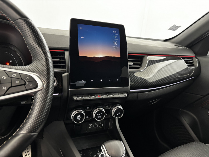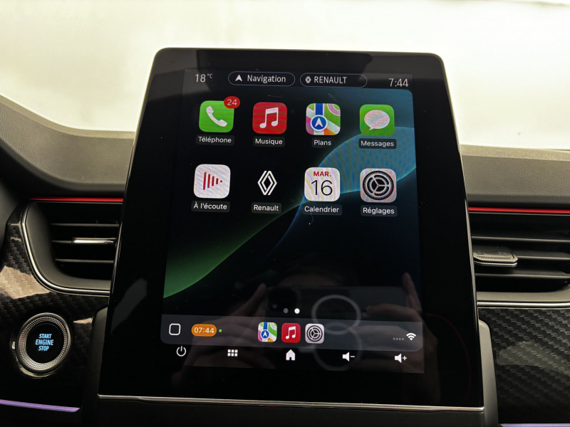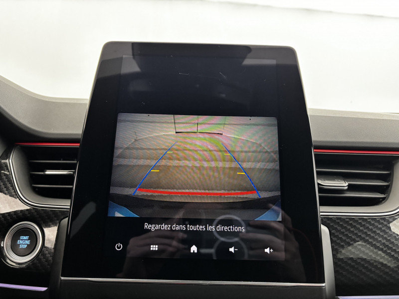 Aérateurs aux places AR / Alerte de distance de sécurité / Alerte de survitesse combinéà la vitesse limite de la navigation / Alerte d'oubli de ceinture de sécurité / Allumage automatique des phares et des essuis-glace avec capteur de pluie et de luminosité / Avertisseur de sortie de stationnement / Banquette AR avec accoudoir central / Boite de vitesse E shifter / Boitier connect AIVC / Bouton d'appel d'urgence R-Call / Carte Renault avec accès et démarrage mains libres avec fermeture à l'éloignement / Commutation automatique des feux de route/croisement / Compartimentage de coffre / Compartimentage de coffre / Coques de rétroviseurs extérieures noires (avec Toit Noir) / Design exterieur RS-Line / Design intérieur RS-Line / Détection d'obstacle latérale / Easy link avec écran tactile 9.3", navigation, réplication smartphone, Bluetooth / Easy Park Assist / Eclairage d'ambiance / Feux de jour à LED avec signature lumineuse C-Shape / Freinage actif d'urgence avec détection piétons et cyclistes / Harmonie intérieure foncée / Indicateur de changement de vitesse / Jantes alliage 18" Silverstone diamantées exclusives R.S. Line avec insert Rouge / Kit de gonflage et de réparation des pneumatiques / Lève-vitres AR électriques avec fonction anti-pincement / Programme eco mode / Projecteurs AV full LED Pure Vision / Purificateur d'air / Renault Multi-sense / Rétroviseur intérieur électrochrome sans contour / Sellerie mixte cuir-suédine surpiqués rouge / Signature R.S. Line / Système ISOFIX (i-Size) aux places AR (latérales) / Tableau de bord avec écran numérique couleur 7'' / Volant chauffant / Volant cuir pleine fleur /