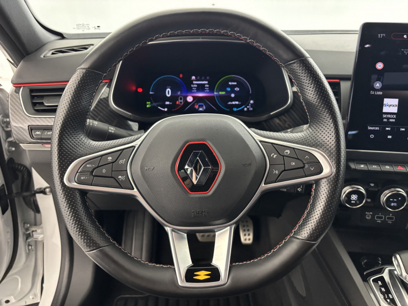 Aérateurs aux places AR / Alerte de distance de sécurité / Alerte de survitesse combinéà la vitesse limite de la navigation / Alerte d'oubli de ceinture de sécurité / Allumage automatique des phares et des essuis-glace avec capteur de pluie et de luminosité / Avertisseur de sortie de stationnement / Banquette AR avec accoudoir central / Boite de vitesse E shifter / Boitier connect AIVC / Bouton d'appel d'urgence R-Call / Carte Renault avec accès et démarrage mains libres avec fermeture à l'éloignement / Commutation automatique des feux de route/croisement / Compartimentage de coffre / Compartimentage de coffre / Coques de rétroviseurs extérieures noires (avec Toit Noir) / Design exterieur RS-Line / Design intérieur RS-Line / Détection d'obstacle latérale / Easy link avec écran tactile 9.3", navigation, réplication smartphone, Bluetooth / Easy Park Assist / Eclairage d'ambiance / Feux de jour à LED avec signature lumineuse C-Shape / Freinage actif d'urgence avec détection piétons et cyclistes / Harmonie intérieure foncée / Indicateur de changement de vitesse / Jantes alliage 18" Silverstone diamantées exclusives R.S. Line avec insert Rouge / Kit de gonflage et de réparation des pneumatiques / Lève-vitres AR électriques avec fonction anti-pincement / Programme eco mode / Projecteurs AV full LED Pure Vision / Purificateur d'air / Renault Multi-sense / Rétroviseur intérieur électrochrome sans contour / Sellerie mixte cuir-suédine surpiqués rouge / Signature R.S. Line / Système ISOFIX (i-Size) aux places AR (latérales) / Tableau de bord avec écran numérique couleur 7'' / Volant chauffant / Volant cuir pleine fleur /