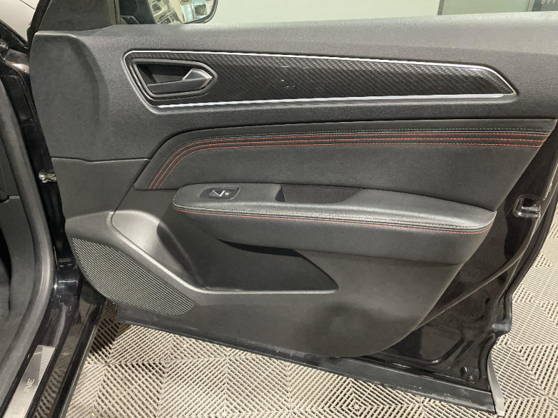 Sellerie mixte cuir-suédine surpiqués rouge / Signature R.S. Line / Volant cuir pleine fleur / Boitier connect AIVC / Système multimédia EASY LINK avec écran tactile 9,3", navigation, Bluetooth / Tableau de bord avec écran numérique couleur 7'' / Jantes alliage 18" Silverstone diamantées exclusives R.S. Line avec insert Rouge / Easy link avec écran tactile 9.3", navigation, réplication smartphone, Bluetooth / Lève-vitres AR électriques avec fonction anti-pincement / Purificateur d'air / Coques de rétroviseurs extérieures noires (avec Toit Noir) / Freinage actif d'urgence avec détection piétons et cyclistes / Bouton d'appel d'urgence R-Call / Design exterieur RS-Line / Design intérieur RS-Line / Carte Renault avec accès et démarrage mains libres avec fermeture à l'éloignement / Renault Multi-sense / Alerte de survitesse combinéà la vitesse limite de la navigation / Allumage automatique des phares et des essuis-glace avec capteur de pluie et de luminosité / Avertisseur de sortie de stationnement / Détection d'obstacle latérale / Feux de jour à LED avec signature lumineuse C-Shape / Programme eco mode / Rétroviseur intérieur électrochrome sans contour / Aérateurs aux places AR / Commutation automatique des feux de route/croisement / Kit de gonflage et de réparation des pneumatiques / Harmonie foncé / Système ISOFIX (i-Size) aux places latérales AR et passager AV / Indicateur de changement de vitesse / Eclairage d'ambiance / Alerte Distance Sécurité / Alerte d'oubli de ceinture de sécurité / Volant chauffant / Banquette AR avec accoudoir central / Compartimentage de coffre / Projecteurs AV full LED Pure Vision / Easy Park Assist