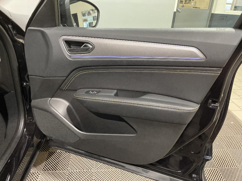 Lève-vitres AR électriques avec fonction anti-pincement / Purificateur d'air / Freinage actif d'urgence avec détection piétons et cyclistes / Bouton d'appel d'urgence R-Call / Boitier connect AIVC / Carte Renault avec accès et démarrage mains libres avec fermeture à l'éloignement / Sans rangement de coffre / Volant non chauffant / Système ISOFIX (i-Size) aux places AR (latérales) / Frein de parking électrique avec fonction Auto-Hold / Tableau de bord avec écran numérique et personnalisable 10" / Projecteurs AV LED pure vision / Coques de rétroviseurs extérieures noires / Ciel de toit noir / Jantes alliage 17'' Bahamas gris pyrite / Jantes alliage 18'' Silverstone diamantées / Sellerie textile enduit grainé - tissu noir / Plancher de coffre amovible / Banquette AR avec accoudoir central / Projecteurs AV full LED Pure Vision / Kit de gonflage et de réparation des pneumatiques / Harmonie foncé / Commutation automatique des feux de route/croisement / Renault Multi-sense / Allumage automatique des phares et des essuis-glace avec capteur de pluie et de luminosité / Avertisseur de sortie de stationnement / Indicateur de changement de vitesse / Eclairage d'ambiance / Alerte Distance Sécurité / Rétroviseur intérieur électrochrome / Système multimédia easy link connecté avec écran tactile 9,3, radio DAB, navigation embarquée / Alerte détection de fatigue / Prédisposition éthylotest / Lame métallique sur bouclier AV inspirée de l'univers de la Formule 1 / Détection intelligente des limitations de vitesse et prévention survitesse / My Safety switch (raccourci vers configuration personnalisée des aides à la conduite) / Sans centrage dans la voie / Boîte de vitesse automatique 4 rapports / Feux de jour à LED avec signature lumineuse C-Shape / Programme eco mode / Aérateurs aux places AR