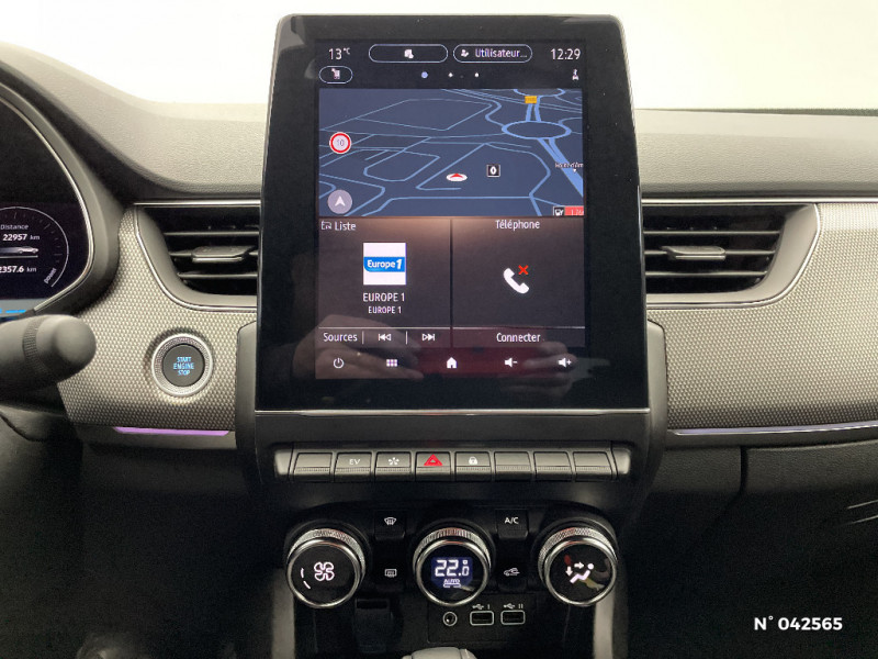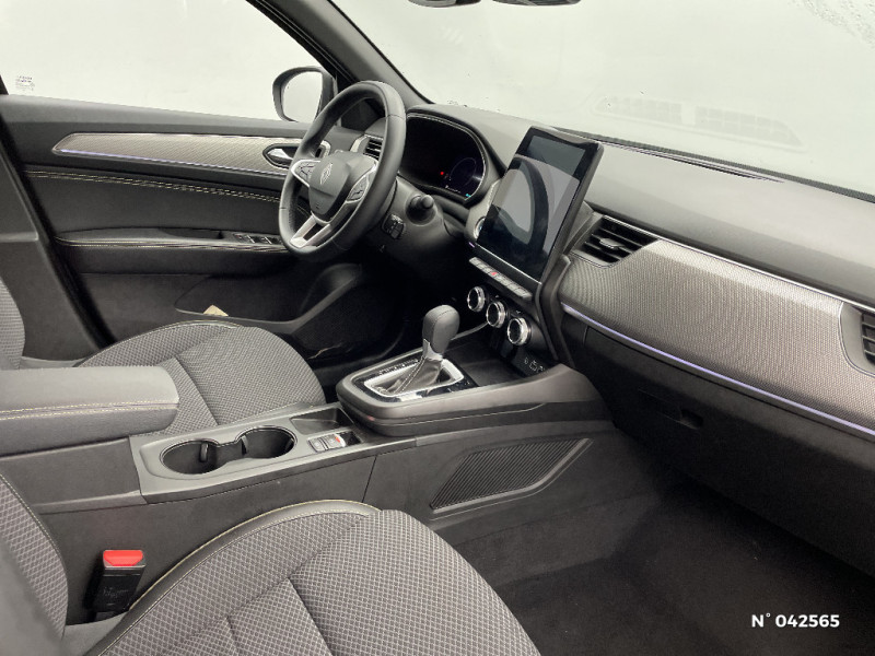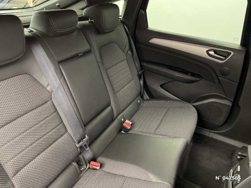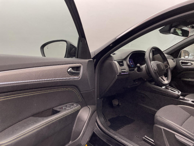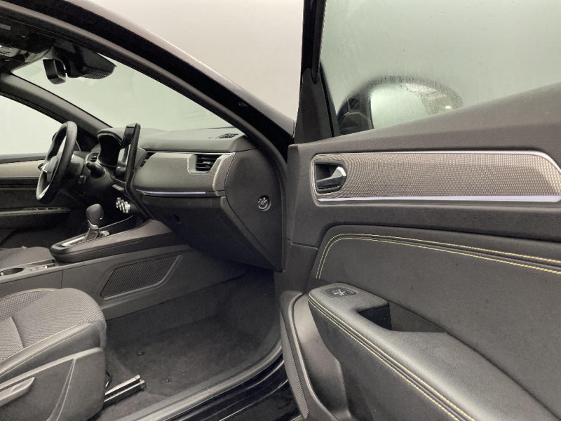 Jantes alliage 17'' Bahamas gris pyrite / Jantes alliage 18'' Silverstone diamantées / Sellerie textile enduit grainé - tissu noir / Plancher de coffre amovible / Banquette AR avec accoudoir central / Projecteurs AV full LED Pure Vision / Kit de gonflage et de réparation des pneumatiques / Harmonie foncé / Commutation automatique des feux de route/croisement / Renault Multi-sense / Système multimédia easy link connecté avec écran tactile 9,3, radio DAB, navigation embarquée / Alerte détection de fatigue / Prédisposition éthylotest / Lame métallique sur bouclier AV inspirée de l'univers de la Formule 1 / Détection intelligente des limitations de vitesse et prévention survitesse / Allumage automatique des phares et des essuis-glace avec capteur de pluie et de luminosité / Avertisseur de sortie de stationnement / Feux de jour à LED avec signature lumineuse C-Shape / Programme eco mode / Aérateurs aux places AR / Lève-vitres AR électriques avec fonction anti-pincement / Purificateur d'air / Rétroviseur intérieur électrochrome / Indicateur de changement de vitesse / Eclairage d'ambiance / Alerte Distance Sécurité / My Safety switch (raccourci vers configuration personnalisée des aides à la conduite) / Sans centrage dans la voie / Boîte de vitesse automatique 4 rapports / Freinage actif d'urgence avec détection piétons et cyclistes / Bouton d'appel d'urgence R-Call / Boitier connect AIVC / Carte Renault avec accès et démarrage mains libres avec fermeture à l'éloignement / Sans rangement de coffre / Volant non chauffant / Système ISOFIX (i-Size) aux places AR (latérales) / Frein de parking électrique avec fonction Auto-Hold / Tableau de bord avec écran numérique et personnalisable 10" / Projecteurs AV LED pure vision / Coques de rétroviseurs extérieures noires / Ciel de toit noir