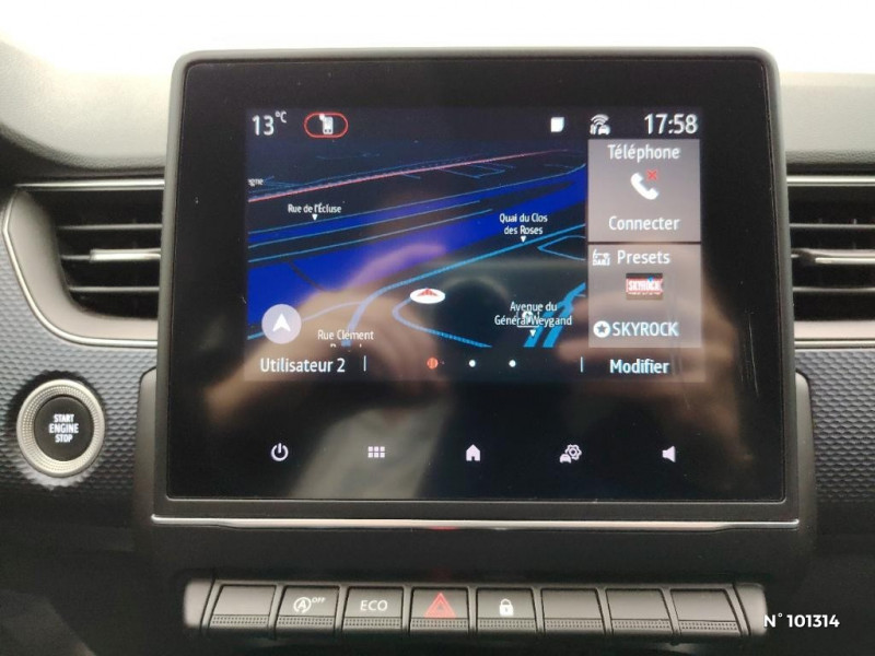 Aérateurs aux places AR / Lève-vitres AR électriques avec fonction anti-pincement / Purificateur d'air / Freinage actif d'urgence avec détection piétons et cyclistes / Bouton d'appel d'urgence R-Call / Sellerie tissu Noir Titane / Volant gainé en similicuir Soft Touch / Boitier connect AIVC / Navigation embarquée avec cartographie Europe / Tableau de bord avec écran couleur 4,2'' et compteurs analogiques / Système ISOFIX (i-Size) aux places AR (latérales) / Alerte de survitesse combinéà la vitesse limite de la navigation / Compatibilité Apple CarPlay Wifi / Jantes alliage 17" Bahamas diamantées noires / Coques de rétroviseurs ton caisse / Indicateur de changement de vitesse / Alerte Distance Sécurité / Alerte d'oubli de ceinture de sécurité / Compartimentage de coffre / Projecteurs AV full LED Pure Vision / Commutation automatique des feux de route/croisement / Kit de gonflage et de réparation des pneumatiques / Harmonie foncé / Carte Renault avec accès et démarrage mains libres avec fermeture à l'éloignement / Allumage automatique des phares et des essuis-glace avec capteur de pluie et de luminosité / Feux de jour à LED avec signature lumineuse C-Shape / Programme eco mode