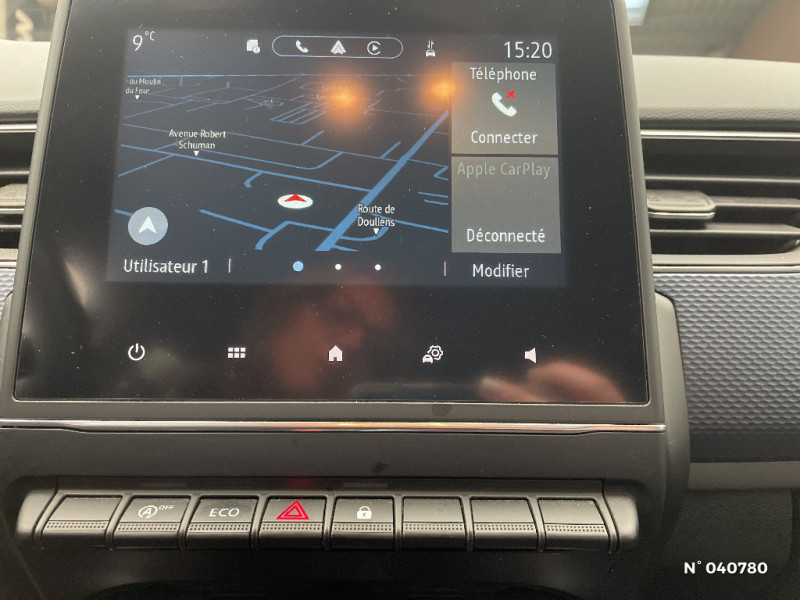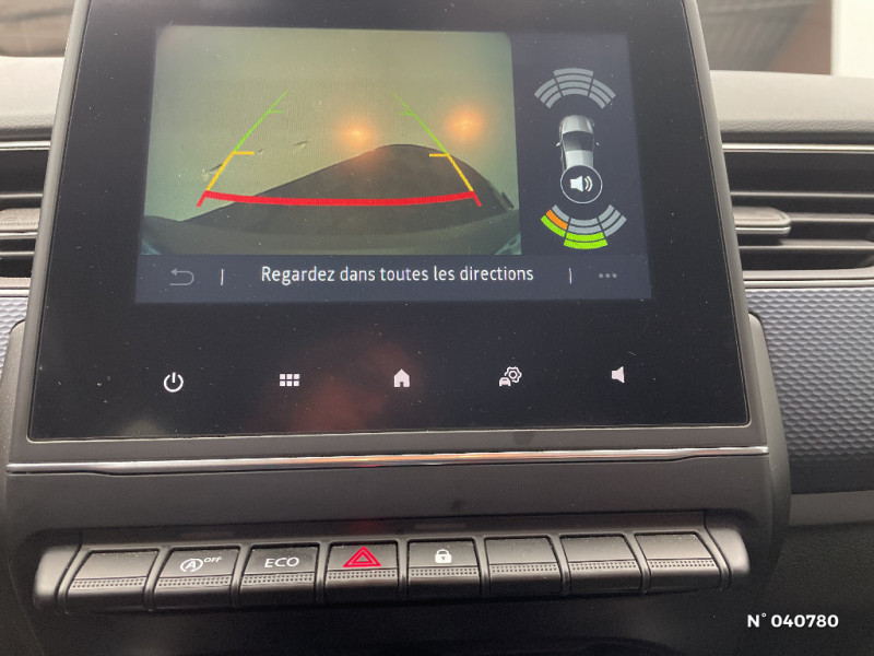 Coques de rétroviseurs ton caisse / Indicateur de changement de vitesse / Alerte Distance Sécurité / Alerte d'oubli de ceinture de sécurité / Compartimentage de coffre / Lève-vitres AR électriques avec fonction anti-pincement / Purificateur d'air / Freinage actif d'urgence avec détection piétons et cyclistes / Bouton d'appel d'urgence R-Call / Projecteurs AV full LED Pure Vision / Commutation automatique des feux de route/croisement / Kit de gonflage et de réparation des pneumatiques / Harmonie foncé / Carte Renault avec accès et démarrage mains libres avec fermeture à l'éloignement / Allumage automatique des phares et des essuis-glace avec capteur de pluie et de luminosité / Feux de jour à LED avec signature lumineuse C-Shape / Programme eco mode / Aérateurs aux places AR / Sellerie tissu Noir Titane / Volant gainé en similicuir Soft Touch / Boitier connect AIVC / Navigation embarquée avec cartographie Europe / Tableau de bord avec écran couleur 4,2'' et compteurs analogiques / Système ISOFIX (i-Size) aux places AR (latérales) / Alerte de survitesse combinéà la vitesse limite de la navigation / Compatibilité Apple CarPlay Wifi / Jantes alliage 17" Bahamas diamantées noires