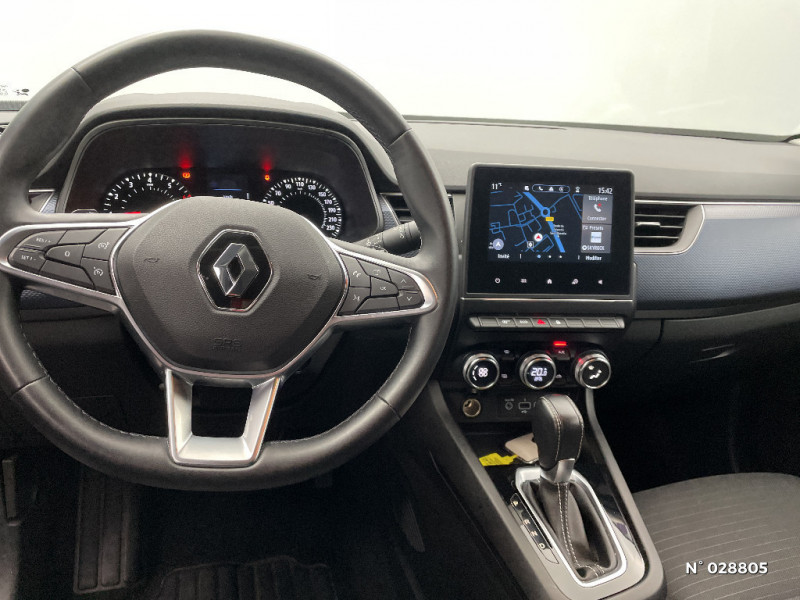 Projecteurs AV full LED Pure Vision / Commutation automatique des feux de route/croisement / Kit de gonflage et de réparation des pneumatiques / Harmonie foncé / Carte Renault avec accès et démarrage mains libres avec fermeture à l'éloignement / Allumage automatique des phares et des essuis-glace avec capteur de pluie et de luminosité / Feux de jour à LED avec signature lumineuse C-Shape / Programme eco mode / Aérateurs aux places AR / Coques de rétroviseurs ton caisse / Indicateur de changement de vitesse / Alerte Distance Sécurité / Alerte d'oubli de ceinture de sécurité / Compartimentage de coffre / Sellerie tissu Noir Titane / Volant gainé en similicuir Soft Touch / Boitier connect AIVC / Navigation embarquée avec cartographie Europe / Tableau de bord avec écran couleur 4,2'' et compteurs analogiques / Système ISOFIX (i-Size) aux places AR (latérales) / Alerte de survitesse combinéà la vitesse limite de la navigation / Compatibilité Apple CarPlay Wifi / Jantes alliage 17" Bahamas diamantées noires / Lève-vitres AR électriques avec fonction anti-pincement / Purificateur d'air / Freinage actif d'urgence avec détection piétons et cyclistes / Bouton d'appel d'urgence R-Call