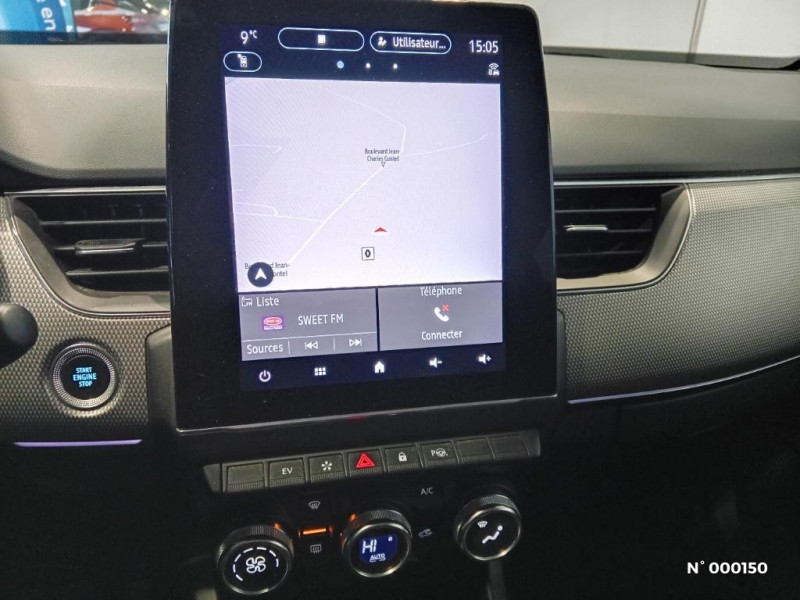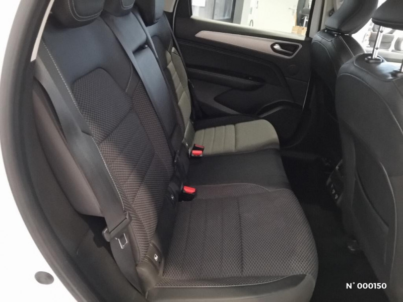 Rétroviseur intérieur électrochrome / Aérateurs aux places AR / Sellerie textile enduit grainé-tissu Noir Titane / Sellerie tissu/TEP Noir Titane / Système ISOFIX (i-Size) aux places AR (latérales) / Système ISOFIX (i-Size) aux places latérales AR et passager AV / Alerte collision AR et freinage actif d'urgence AR piéton / Alerte de distance de sécurité / Alerte de survitesse combinéà la vitesse limite de la navigation / Alerte d'oubli de ceinture de sécurité / Allumage automatique des phares et des essuis-glace avec capteur de pluie et de luminosité / Appellation Renault / Avertisseur de sortie de stationnement / Banquette AR avec accoudoir central / Boitier connect AIVC / Bouton d'appel d'urgence R-Call / Carte Renault avec accès et démarrage mains libres avec fermeture à l'éloignement / Cartographie France / Cartographie Standard / Commutation automatique des feux de route/croisement / Compartimentage de coffre / Compartimentage de coffre / Coques de rétroviseurs extérieures ton caisse / Easy link avec écran tactile 9.3", navigation, réplication smartphone, Bluetooth / Eclairage d'ambiance / Feux de jour à LED avec signature lumineuse C-Shape / Freinage actif d'urgence avec détection piétons et cyclistes / Harmonie intérieure foncée / Indicateur de changement de vitesse / Jantes alliage 18" Pasadena diamantées noires / Kit de gonflage et de réparation des pneumatiques / Lève-vitres AR électriques avec fonction anti-pincement / Monte banalisée / Pneu standard / Programme eco mode / Projecteurs AV full LED Pure Vision / Purificateur d'air / Renault Multi-sense / Tableau de bord avec écran numérique couleur 7'' / Volant cuir pleine fleur / Système multimédia EASY LINK avec écran tactile 9,3", navigation, Bluetooth