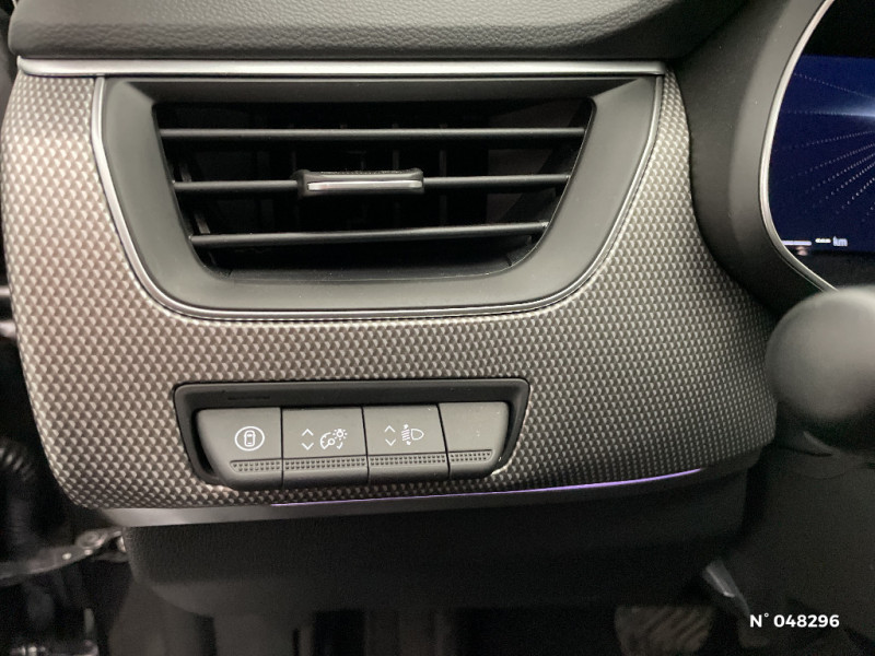 My Safety switch (raccourci vers configuration personnalisée des aides à la conduite) / Sans centrage dans la voie / Boîte de vitesse automatique 4 rapports / Alerte détection de fatigue / Prédisposition éthylotest / Lame métallique sur bouclier AV inspirée de l'univers de la Formule 1 / Détection intelligente des limitations de vitesse et prévention survitesse / Ciel de toit noir / Jantes alliage 17'' Bahamas gris pyrite / Jantes alliage 18'' Silverstone diamantées / Sellerie textile enduit grainé - tissu noir / Plancher de coffre amovible / Système multimédia easy link connecté avec écran tactile 9,3, radio DAB, navigation embarquée / Kit de gonflage et de réparation des pneumatiques / Harmonie foncé / Commutation automatique des feux de route/croisement / Renault Multi-sense / Allumage automatique des phares et des essuis-glace avec capteur de pluie et de luminosité / Avertisseur de sortie de stationnement / Feux de jour à LED avec signature lumineuse C-Shape / Programme eco mode / Aérateurs aux places AR / Lève-vitres AR électriques avec fonction anti-pincement / Purificateur d'air / Freinage actif d'urgence avec détection piétons et cyclistes / Bouton d'appel d'urgence R-Call / Boitier connect AIVC / Carte Renault avec accès et démarrage mains libres avec fermeture à l'éloignement / Sans rangement de coffre / Volant non chauffant / Système ISOFIX (i-Size) aux places AR (latérales) / Frein de parking électrique avec fonction Auto-Hold / Tableau de bord avec écran numérique et personnalisable 10" / Projecteurs AV LED pure vision / Coques de rétroviseurs extérieures noires / Rétroviseur intérieur électrochrome / Indicateur de changement de vitesse / Eclairage d'ambiance / Alerte Distance Sécurité / Banquette AR avec accoudoir central / Projecteurs AV full LED Pure Vision