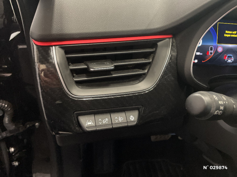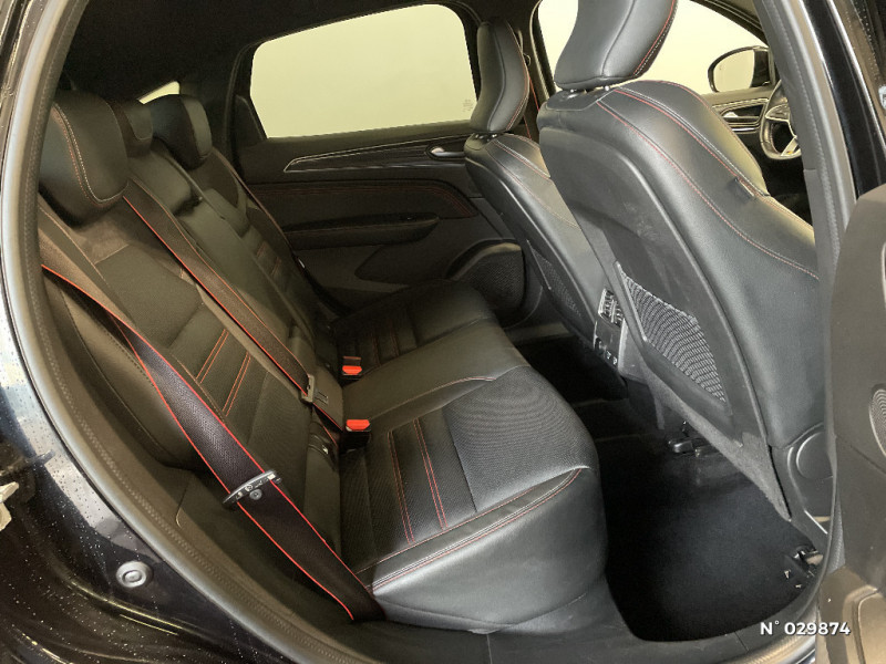 Signature R.S. Line / Volant cuir pleine fleur / Boitier connect AIVC / Volant chauffant / Banquette AR avec accoudoir central / Compartimentage de coffre / Projecteurs AV full LED Pure Vision / Easy Park Assist / Commutation automatique des feux de route/croisement / Kit de gonflage et de réparation des pneumatiques / Harmonie foncé / Système ISOFIX (i-Size) aux places latérales AR et passager AV / Design exterieur RS-Line / Design intérieur RS-Line / Carte Renault avec accès et démarrage mains libres avec fermeture à l'éloignement / Renault Multi-sense / Système multimédia EASY LINK avec écran tactile 9,3", navigation, Bluetooth / Tableau de bord avec écran numérique couleur 7'' / Jantes alliage 18" Silverstone diamantées exclusives R.S. Line avec insert Rouge / Easy link avec écran tactile 9.3", navigation, réplication smartphone, Bluetooth / Système ISOFIX (i-Size) aux places AR (latérales) / Alerte de survitesse combinéà la vitesse limite de la navigation / Allumage automatique des phares et des essuis-glace avec capteur de pluie et de luminosité / Avertisseur de sortie de stationnement / Boite de vitesse E shifter / Détection d'obstacle latérale / Alerte Distance Sécurité / Alerte d'oubli de ceinture de sécurité / Feux de jour à LED avec signature lumineuse C-Shape / Programme eco mode / Rétroviseur intérieur électrochrome sans contour / Aérateurs aux places AR / Lève-vitres AR électriques avec fonction anti-pincement / Purificateur d'air / Coques de rétroviseurs extérieures noires (avec Toit Noir) / Freinage actif d'urgence avec détection piétons et cyclistes / Bouton d'appel d'urgence R-Call / Sellerie mixte cuir-suédine surpiqués rouge / Indicateur de changement de vitesse / Eclairage d'ambiance