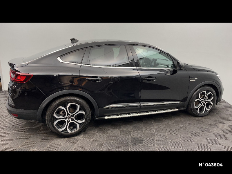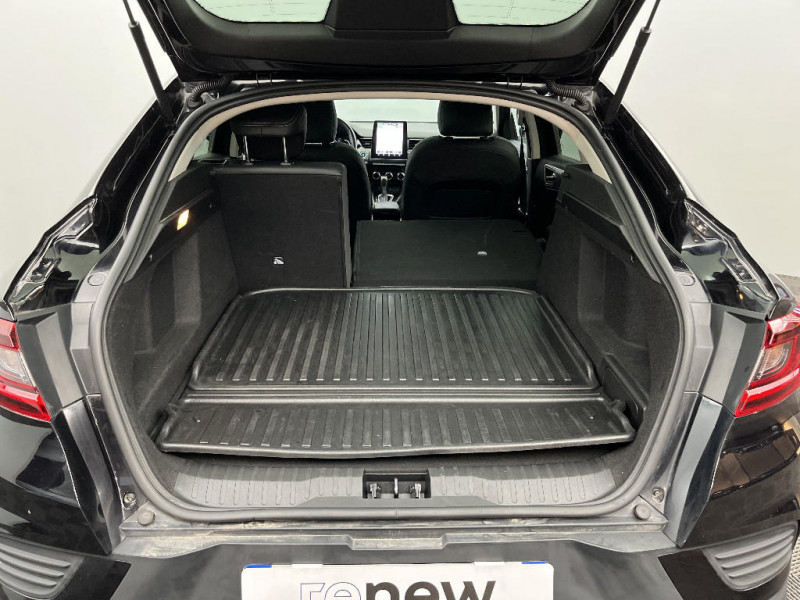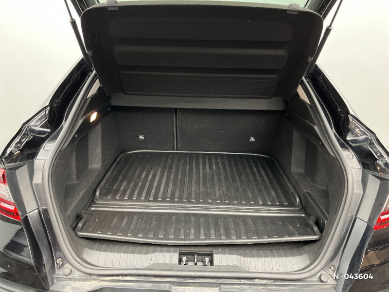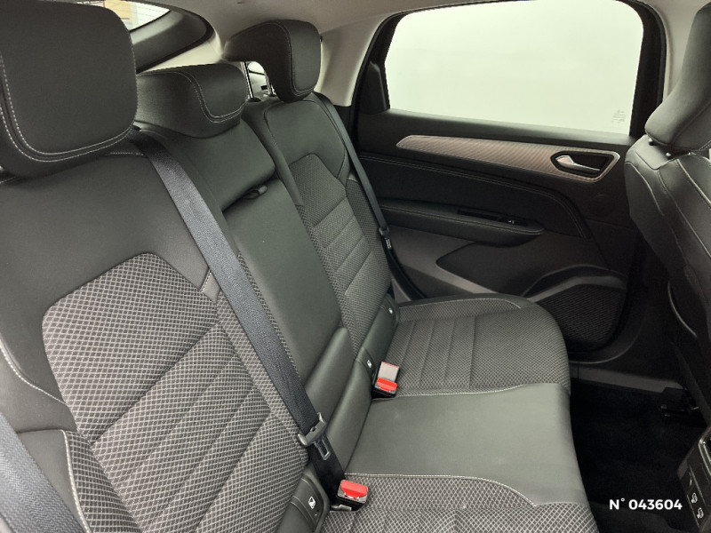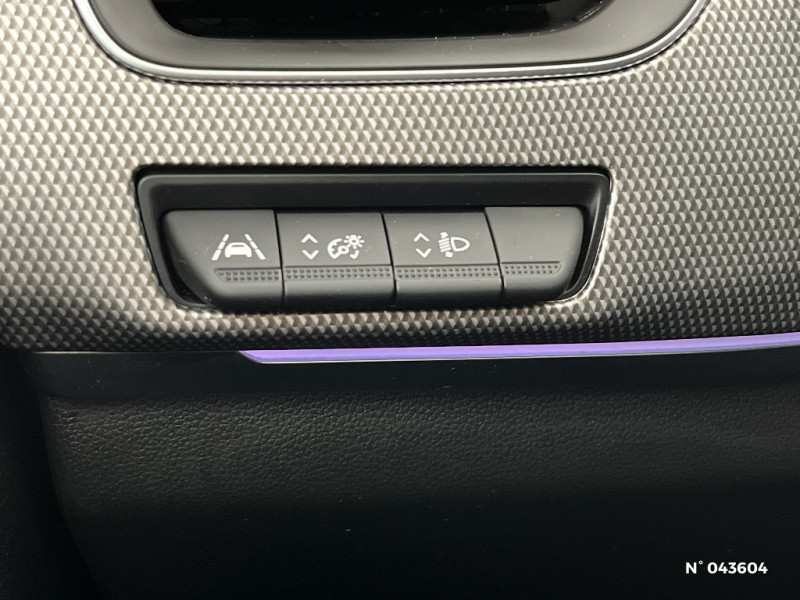 Appellation Renault / Projecteurs AV full LED Pure Vision / Commutation automatique des feux de route/croisement / Rétroviseur intérieur électrochrome / Coques de rétroviseurs ton caisse / Indicateur de changement de vitesse / Eclairage d'ambiance / Alerte Distance Sécurité / Alerte d'oubli de ceinture de sécurité / Banquette AR avec accoudoir central / Compartimentage de coffre / Kit de gonflage et de réparation des pneumatiques / Harmonie foncé / Système ISOFIX (i-Size) aux places latérales AR et passager AV / Carte Renault avec accès et démarrage mains libres avec fermeture à l'éloignement / Pneu standard / Renault Multi-sense / Alerte de survitesse combinéà la vitesse limite de la navigation / Allumage automatique des phares et des essuis-glace avec capteur de pluie et de luminosité / Avertisseur de sortie de stationnement / Feux de jour à LED avec signature lumineuse C-Shape / Monte banalisée / Programme eco mode / Aérateurs aux places AR / Freinage actif d'urgence avec détection piétons et cyclistes / Bouton d'appel d'urgence R-Call / Sellerie tissu/TEP Noir Titane / Volant cuir pleine fleur / Boitier connect AIVC / Cartographie France / Cartographie Standard / Système multimédia EASY LINK avec écran tactile 9,3", navigation, Bluetooth / Tableau de bord avec écran numérique couleur 7'' / Lève-vitres AR électriques avec fonction anti-pincement / Purificateur d'air / Jantes alliage 18" Pasadena diamantées noires