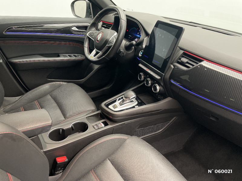 Tableau de bord avec écran numérique et personnalisable 10" / Coques de rétroviseurs extérieures noires / Centrage dans la voie (active driver assist) / Ciel de toit noir / Console centrale avec levier de vitesse e-shifter / Design esprit Alpine extérieur / Design esprit Alpine intérieur / Double canule d'échappement noir brillant / Jantes alliage 19'' esprit Alpine / Lame métallique grise sur bouclier avant inspirée de l'univers de la Formule 1 / Sellerie mixte textile enduit grainé - suédine avec surpiqures esprit Alpine / Indicateur de changement de vitesse / Eclairage d'ambiance / Alerte Distance Sécurité / Volant chauffant / Banquette AR avec accoudoir central / Compartimentage de coffre / Projecteurs AV full LED Pure Vision / Kit de gonflage et de réparation des pneumatiques / Harmonie foncé / Commutation automatique des feux de route/croisement / Renault Multi-sense / Bouton d'appel d'urgence R-Call / Boitier connect AIVC / Carte Renault avec accès et démarrage mains libres avec fermeture à l'éloignement / Easy link avec écran tactile 9.3", navigation, réplication smartphone, Bluetooth / Système ISOFIX (i-Size) aux places AR (latérales) / Alerte de survitesse combinéà la vitesse limite de la navigation / Compatibilité Apple CarPlay Wifi / Frein de parking électrique avec fonction Auto-Hold / Allumage automatique des phares et des essuis-glace avec capteur de pluie et de luminosité / Avertisseur de sortie de stationnement / Feux de jour à LED avec signature lumineuse C-Shape / Programme eco mode / Rétroviseur intérieur électrochrome sans contour / Aérateurs aux places AR / Freinage actif d'urgence avec détection piétons et cyclistes / Lève-vitres AR électriques avec fonction anti-pincement / Purificateur d'air