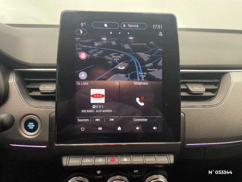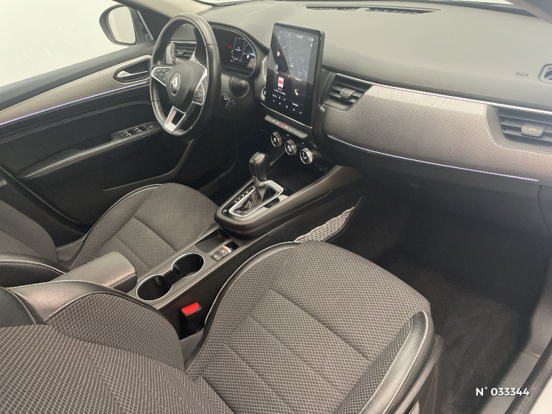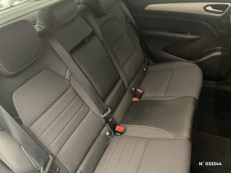 Tableau de bord avec écran numérique couleur 7'' / Coques de rétroviseurs ton caisse / Indicateur de changement de vitesse / Eclairage d'ambiance / Alerte Distance Sécurité / Alerte d'oubli de ceinture de sécurité / Banquette AR avec accoudoir central / Compartimentage de coffre / Projecteurs AV full LED Pure Vision / Commutation automatique des feux de route/croisement / Kit de gonflage et de réparation des pneumatiques / Harmonie foncé / Carte Renault avec accès et démarrage mains libres avec fermeture à l'éloignement / Renault Multi-sense / Allumage automatique des phares et des essuis-glace avec capteur de pluie et de luminosité / Avertisseur de sortie de stationnement / Feux de jour à LED avec signature lumineuse C-Shape / Programme eco mode / Aérateurs aux places AR / Rétroviseur intérieur électrochrome / Sellerie similicuir-tissu Noir Titane / Easy link avec écran tactile 9.3", navigation, réplication smartphone, Bluetooth / Système ISOFIX (i-Size) aux places AR (latérales) / Alerte de survitesse combinéà la vitesse limite de la navigation / Lève-vitres AR électriques avec fonction anti-pincement / Purificateur d'air / Jantes alliage 18" Pasadena diamantées noires / Freinage actif d'urgence avec détection piétons et cyclistes / Bouton d'appel d'urgence R-Call / Volant cuir pleine fleur / Boitier connect AIVC