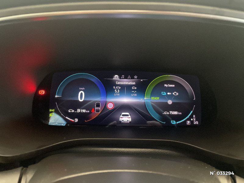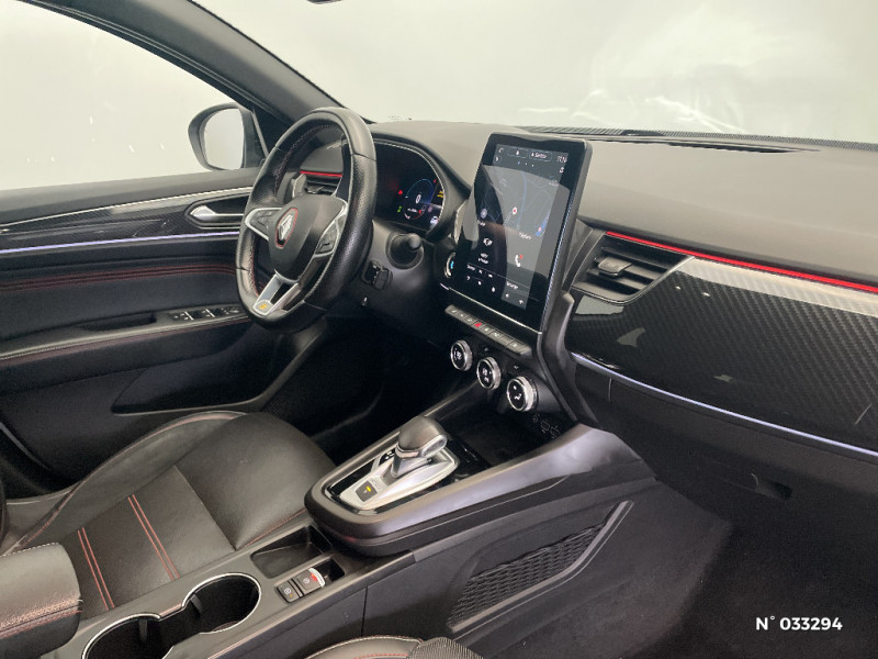 Système ISOFIX (i-Size) aux places AR (latérales) / Alerte de survitesse combinéà la vitesse limite de la navigation / Frein de parking électrique avec fonction Auto-Hold / Projecteurs AV full LED Pure Vision / Easy Park Assist / Commutation automatique des feux de route/croisement / Harmonie foncé / Design exterieur RS-Line / Design intérieur RS-Line / Carte Renault avec accès et démarrage mains libres avec fermeture à l'éloignement / Renault Multi-sense / Allumage automatique des phares et des essuis-glace avec capteur de pluie et de luminosité / Avertisseur de sortie de stationnement / Boite de vitesse E shifter / Détection d'obstacle latérale / Feux de jour à LED avec signature lumineuse C-Shape / Programme eco mode / Rétroviseur intérieur électrochrome sans contour / Aérateurs aux places AR / Lève-vitres AR électriques avec fonction anti-pincement / Purificateur d'air / Coques de rétroviseurs extérieures noires (avec Toit Noir) / Freinage actif d'urgence avec détection piétons et cyclistes / Bouton d'appel d'urgence R-Call / Sellerie mixte cuir-suédine surpiqués rouge / Signature R.S. Line / Volant cuir pleine fleur / Boitier connect AIVC / Jantes alliage 18" Silverstone diamantées exclusives R.S. Line avec insert Rouge / Version Fast Track / Tableau de bord avec écran numérique et personnalisable 10" / Easy link avec écran tactile 9.3", navigation, réplication smartphone, Bluetooth / Réhomologation E-Tech / Eclairage d'ambiance / Alerte Distance Sécurité / Alerte d'oubli de ceinture de sécurité / Indicateur de changement de vitesse / Compartimentage de coffre / Volant chauffant / Banquette AR avec accoudoir central