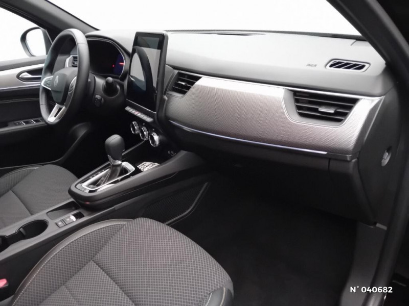 Tableau de bord avec écran numérique et personnalisable 10" / Projecteurs AV LED pure vision / Coques de rétroviseurs extérieures noires / Ciel de toit noir / Banquette AR avec accoudoir central / Projecteurs AV full LED Pure Vision / Kit de gonflage et de réparation des pneumatiques / Harmonie foncé / Commutation automatique des feux de route/croisement / Rétroviseur intérieur électrochrome / Indicateur de changement de vitesse / Eclairage d'ambiance / Alerte Distance Sécurité / Renault Multi-sense / Allumage automatique des phares et des essuis-glace avec capteur de pluie et de luminosité / Avertisseur de sortie de stationnement / Feux de jour à LED avec signature lumineuse C-Shape / Programme eco mode / Aérateurs aux places AR / Lève-vitres AR électriques avec fonction anti-pincement / Purificateur d'air / Freinage actif d'urgence avec détection piétons et cyclistes / Bouton d'appel d'urgence R-Call / Boitier connect AIVC / Carte Renault avec accès et démarrage mains libres avec fermeture à l'éloignement / Sans rangement de coffre / Volant non chauffant / Système ISOFIX (i-Size) aux places AR (latérales) / Frein de parking électrique avec fonction Auto-Hold / Jantes alliage 17'' Bahamas gris pyrite / Jantes alliage 18'' Silverstone diamantées / Sellerie textile enduit grainé - tissu noir / Plancher de coffre amovible / Système multimédia easy link connecté avec écran tactile 9,3, radio DAB, navigation embarquée / Alerte détection de fatigue / Prédisposition éthylotest / Lame métallique sur bouclier AV inspirée de l'univers de la Formule 1 / Détection intelligente des limitations de vitesse et prévention survitesse / My Safety switch (raccourci vers configuration personnalisée des aides à la conduite) / Sans centrage dans la voie / Boîte de vitesse automatique 4 rapports