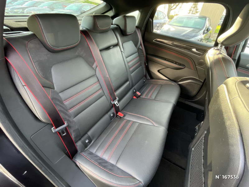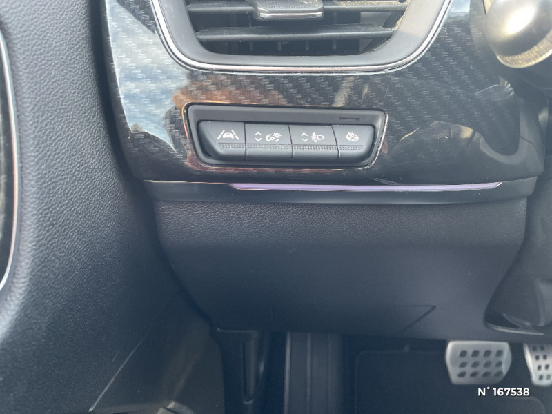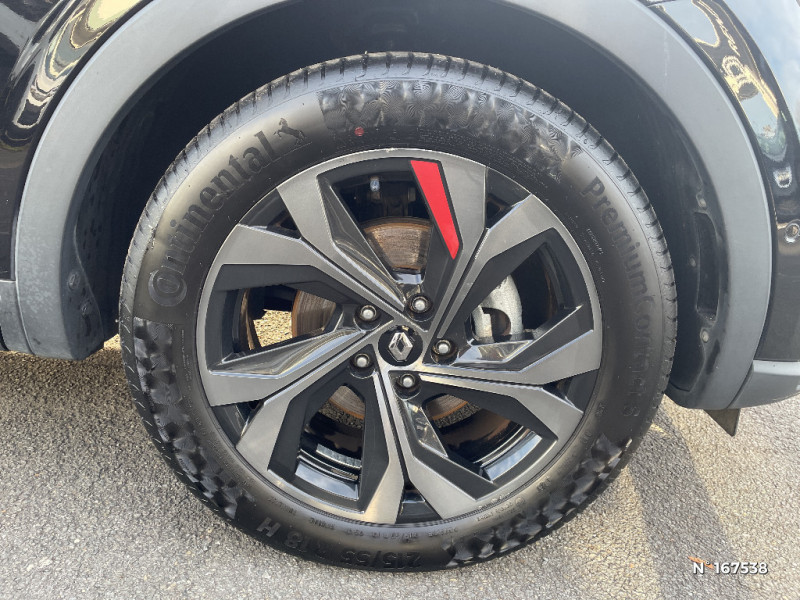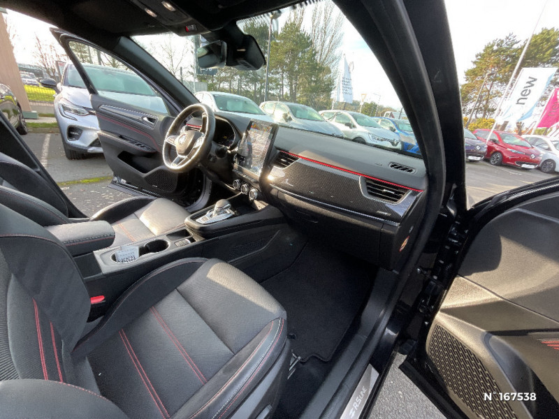 Indicateur de changement de vitesse / Eclairage d'ambiance / Alerte Distance Sécurité / Alerte d'oubli de ceinture de sécurité / Volant chauffant / Banquette AR avec accoudoir central / Compartimentage de coffre / Appellation Renault / Projecteurs AV full LED Pure Vision / Easy Park Assist / Commutation automatique des feux de route/croisement / Tableau de bord avec écran numérique et personnalisable 10" / Kit de gonflage et de réparation des pneumatiques / Harmonie foncé / Système ISOFIX (i-Size) aux places latérales AR et passager AV / Design exterieur RS-Line / Design intérieur RS-Line / Pneu standard / Renault Multi-sense / Alerte de survitesse combinéà la vitesse limite de la navigation / Allumage automatique des phares et des essuis-glace avec capteur de pluie et de luminosité / Avertisseur de sortie de stationnement / Boite de vitesse E shifter / Détection d'obstacle latérale / Feux de jour à LED avec signature lumineuse C-Shape / Monte banalisée / Programme eco mode / Aérateurs aux places AR / Lève-vitres AR électriques avec fonction anti-pincement / Purificateur d'air / Coques de rétroviseurs extérieures noires (avec Toit Noir) / Freinage actif d'urgence avec détection piétons et cyclistes / Bouton d'appel d'urgence R-Call / Rétroviseur intérieur électrochrome sans contour / Sellerie mixte cuir-suédine surpiqués rouge / Signature R.S. Line / Volant cuir pleine fleur / Boitier connect AIVC / Cartographie France / Cartographie Standard / Système multimédia EASY LINK avec écran tactile 9,3", navigation, Bluetooth / Jantes alliage 18" Silverstone diamantées exclusives R.S. Line avec insert Rouge
