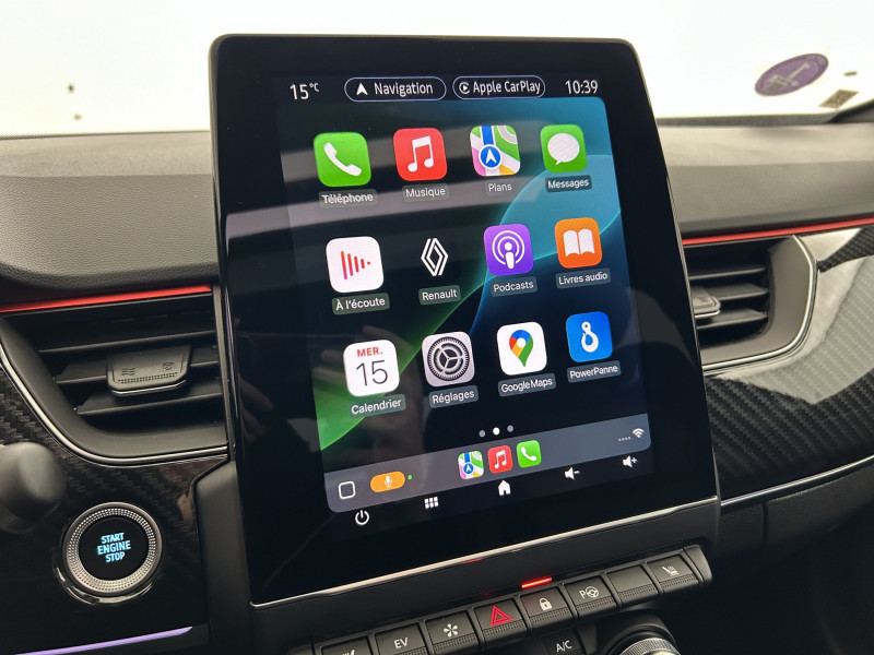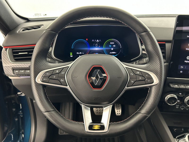 Aérateurs aux places AR / Alerte de distance de sécurité / Alerte de survitesse combinéà la vitesse limite de la navigation / Alerte d'oubli de ceinture de sécurité / Allumage automatique des phares et des essuis-glace avec capteur de pluie et de luminosité / Avertisseur de sortie de stationnement / Banquette AR avec accoudoir central / Boite de vitesse E shifter / Boitier connect AIVC / Bouton d'appel d'urgence R-Call / Carte Renault avec accès et démarrage mains libres avec fermeture à l'éloignement / Commutation automatique des feux de route/croisement / Compartimentage de coffre / Compartimentage de coffre / Coques de rétroviseurs extérieures noires (avec Toit Noir) / Design exterieur RS-Line / Design intérieur RS-Line / Détection d'obstacle latérale / Easy link avec écran tactile 9.3", navigation, réplication smartphone, Bluetooth / Easy Park Assist / Eclairage d'ambiance / Feux de jour à LED avec signature lumineuse C-Shape / Freinage actif d'urgence avec détection piétons et cyclistes / Harmonie intérieure foncée / Indicateur de changement de vitesse / Jantes alliage 18" Silverstone diamantées exclusives R.S. Line avec insert Rouge / Kit de gonflage et de réparation des pneumatiques / Lève-vitres AR électriques avec fonction anti-pincement / Programme eco mode / Projecteurs AV full LED Pure Vision / Purificateur d'air / Renault Multi-sense / Rétroviseur intérieur électrochrome sans contour / Sellerie mixte cuir-suédine surpiqués rouge / Signature R.S. Line / Système ISOFIX (i-Size) aux places AR (latérales) / Tableau de bord avec écran numérique couleur 7'' / Volant chauffant / Volant cuir pleine fleur /