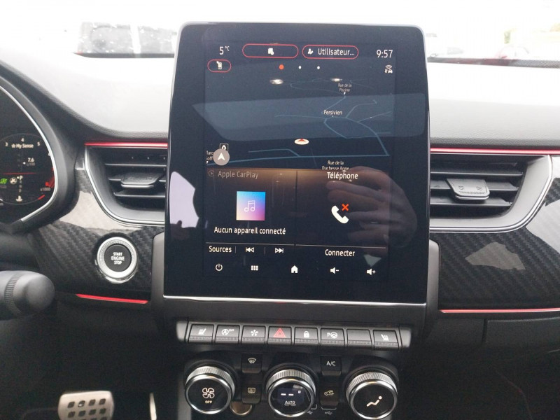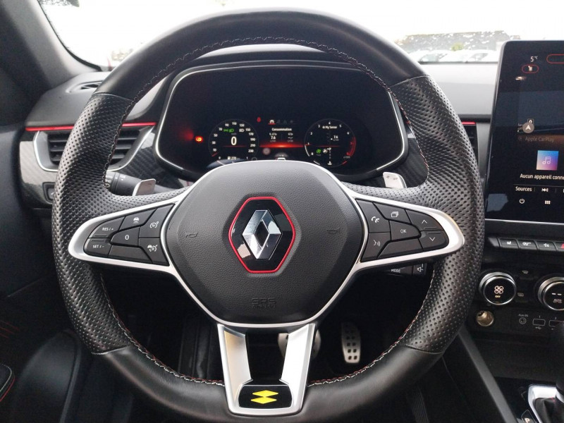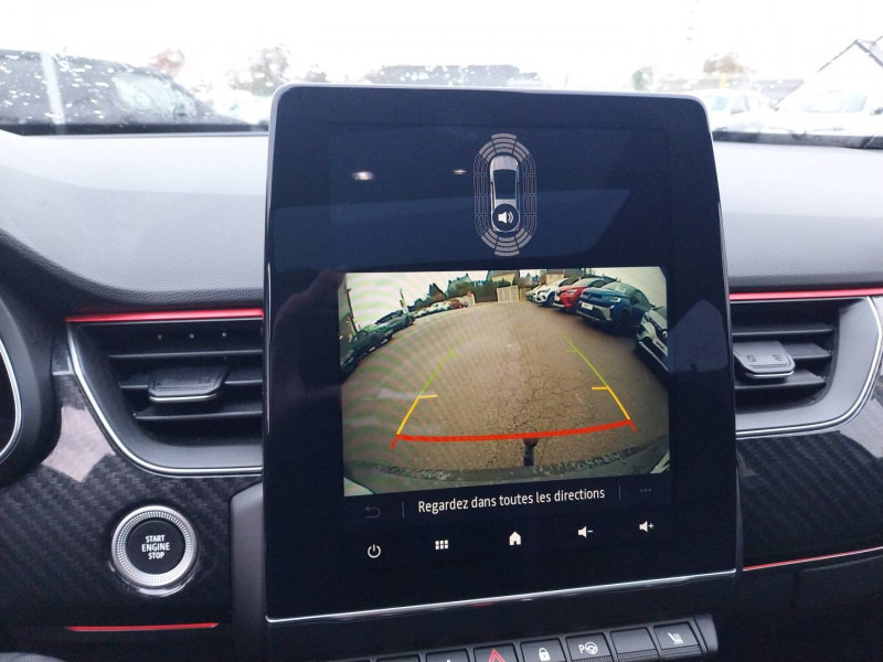 Aérateurs aux places AR / Alerte de distance de sécurité / Alerte de survitesse combinéà la vitesse limite de la navigation / Alerte d'oubli de ceinture de sécurité / Allumage automatique des phares et des essuis-glace avec capteur de pluie et de luminosité / Avertisseur de sortie de stationnement / Banquette AR avec accoudoir central / Boitier connect AIVC / Bouton d'appel d'urgence R-Call / Carte Renault avec accès et démarrage mains libres avec fermeture à l'éloignement / Commutation automatique des feux de route/croisement / Compartimentage de coffre / Compartimentage de coffre / Compatibilité Apple CarPlay Wifi / Coques de rétroviseurs extérieures noires / Design exterieur RS-Line / Design intérieur RS-Line / Détection d'obstacle latérale / Easy link avec écran tactile 9.3", navigation, réplication smartphone, Bluetooth / Easy Park Assist / Eclairage d'ambiance / Feux de jour à LED avec signature lumineuse C-Shape / Freinage actif d'urgence avec détection piétons et cyclistes / Frein de parking électrique avec fonction Auto-Hold / Harmonie intérieure foncée / Indicateur de changement de vitesse / Jantes alliage 18" Silverstone diamantées exclusives R.S. Line avec insert Rouge / Kit de gonflage et de réparation des pneumatiques / Lève-vitres AR électriques avec fonction anti-pincement / Programme eco mode / Projecteurs AV full LED Pure Vision / Purificateur d'air / Renault Multi-sense / Rétroviseur intérieur électrochrome sans contour / Sellerie mixte cuir-suédine surpiqués rouge / Signature R.S. Line / Système ISOFIX (i-Size) aux places AR (latérales) / Tableau de bord avec écran numérique et personnalisable 10" / Volant chauffant / Volant cuir pleine fleur /
