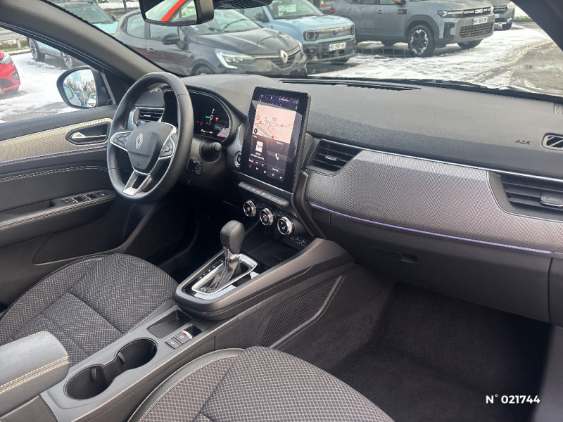 Freinage actif d'urgence avec détection piétons et cyclistes / Bouton d'appel d'urgence R-Call / Boitier connect AIVC / Carte Renault avec accès et démarrage mains libres avec fermeture à l'éloignement / Sans rangement de coffre / Volant non chauffant / Système ISOFIX (i-Size) aux places AR (latérales) / Frein de parking électrique avec fonction Auto-Hold / Tableau de bord avec écran numérique et personnalisable 10" / Projecteurs AV LED pure vision / Coques de rétroviseurs extérieures noires / Ciel de toit noir / Jantes alliage 17'' Bahamas gris pyrite / Jantes alliage 18'' Silverstone diamantées / Sellerie textile enduit grainé - tissu noir / Plancher de coffre amovible / Lève-vitres AR électriques avec fonction anti-pincement / Purificateur d'air / Système multimédia easy link connecté avec écran tactile 9,3, radio DAB, navigation embarquée / Alerte détection de fatigue / Prédisposition éthylotest / Lame métallique sur bouclier AV inspirée de l'univers de la Formule 1 / Détection intelligente des limitations de vitesse et prévention survitesse / My Safety switch (raccourci vers configuration personnalisée des aides à la conduite) / Sans centrage dans la voie / Boîte de vitesse automatique 4 rapports / Avertisseur de sortie de stationnement / Feux de jour à LED avec signature lumineuse C-Shape / Programme eco mode / Aérateurs aux places AR / Rétroviseur intérieur électrochrome / Indicateur de changement de vitesse / Eclairage d'ambiance / Alerte Distance Sécurité / Banquette AR avec accoudoir central / Projecteurs AV full LED Pure Vision / Kit de gonflage et de réparation des pneumatiques / Harmonie foncé / Commutation automatique des feux de route/croisement / Renault Multi-sense / Allumage automatique des phares et des essuis-glace avec capteur de pluie et de luminosité