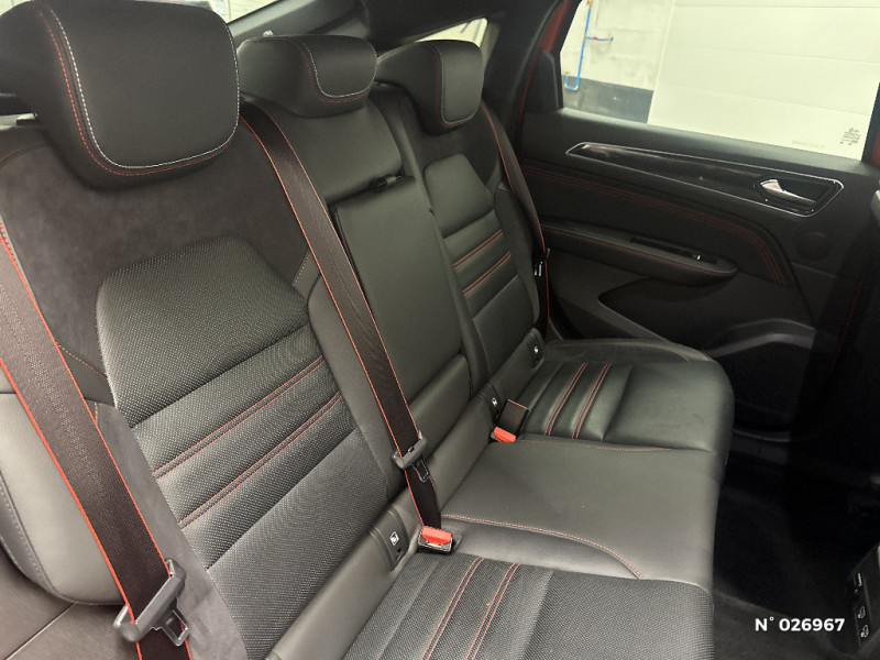 Tableau de bord avec écran numérique couleur 7'' / Jantes alliage 18" Silverstone diamantées exclusives R.S. Line avec insert Rouge / Easy link avec écran tactile 9.3", navigation, réplication smartphone, Bluetooth / Système ISOFIX (i-Size) aux places AR (latérales) / Design exterieur RS-Line / Design intérieur RS-Line / Carte Renault avec accès et démarrage mains libres avec fermeture à l'éloignement / Renault Multi-sense / Alerte de survitesse combinéà la vitesse limite de la navigation / Allumage automatique des phares et des essuis-glace avec capteur de pluie et de luminosité / Avertisseur de sortie de stationnement / Boite de vitesse E shifter / Détection d'obstacle latérale / Indicateur de changement de vitesse / Eclairage d'ambiance / Alerte Distance Sécurité / Alerte d'oubli de ceinture de sécurité / Volant chauffant / Banquette AR avec accoudoir central / Compartimentage de coffre / Projecteurs AV full LED Pure Vision / Easy Park Assist / Commutation automatique des feux de route/croisement / Kit de gonflage et de réparation des pneumatiques / Harmonie foncé / Système ISOFIX (i-Size) aux places latérales AR et passager AV / Feux de jour à LED avec signature lumineuse C-Shape / Programme eco mode / Rétroviseur intérieur électrochrome sans contour / Aérateurs aux places AR / Lève-vitres AR électriques avec fonction anti-pincement / Purificateur d'air / Coques de rétroviseurs extérieures noires (avec Toit Noir) / Freinage actif d'urgence avec détection piétons et cyclistes / Bouton d'appel d'urgence R-Call / Sellerie mixte cuir-suédine surpiqués rouge / Signature R.S. Line / Volant cuir pleine fleur / Boitier connect AIVC / Système multimédia EASY LINK avec écran tactile 9,3", navigation, Bluetooth