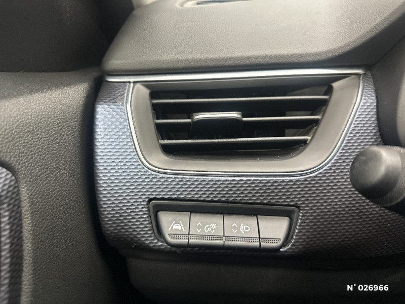 Projecteurs AV full LED Pure Vision / Coques de rétroviseurs ton caisse / Indicateur de changement de vitesse / Alerte Distance Sécurité / Alerte d'oubli de ceinture de sécurité / Compartimentage de coffre / Appellation Renault / Harmonie foncé / Système ISOFIX (i-Size) aux places latérales AR et passager AV / Carte Renault avec accès et démarrage mains libres avec fermeture à l'éloignement / Pneu standard / Alerte de survitesse combinéà la vitesse limite de la navigation / Allumage automatique des phares et des essuis-glace avec capteur de pluie et de luminosité / Feux de jour à LED avec signature lumineuse C-Shape / Monte banalisée / Programme eco mode / Aérateurs aux places AR / Lève-vitres AR électriques avec fonction anti-pincement / Purificateur d'air / Jantes alliage 17" Bahamas diamantées noires / Freinage actif d'urgence avec détection piétons et cyclistes / Commutation automatique des feux de route/croisement / Kit de gonflage et de réparation des pneumatiques / Bouton d'appel d'urgence R-Call / Sellerie tissu Noir Titane / Volant gainé en similicuir Soft Touch / Boitier connect AIVC / Cartographie France / Cartographie Standard / Système Multimédia EASY LINK avec écran 7" avec replication smartphone + WIFI - 6 haut-parleurs / Tableau de bord avec écran numérique couleur 7'' / Navigation embarquée avec cartographie Europe