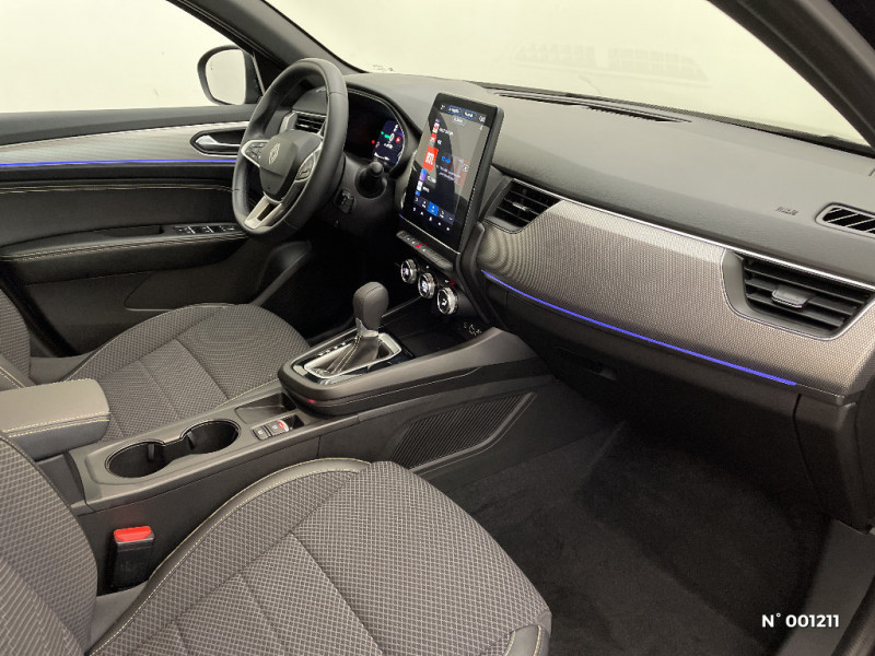 Lève-vitres AR électriques avec fonction anti-pincement / Purificateur d'air / Projecteurs AV full LED Pure Vision / Kit de gonflage et de réparation des pneumatiques / Harmonie foncé / Commutation automatique des feux de route/croisement / Renault Multi-sense / My Safety switch (raccourci vers configuration personnalisée des aides à la conduite) / Boîte de vitesse automatique 4 rapports / Boîte de vitesse hybride multimode 6 rapports / Rétroviseur intérieur électrochrome / Indicateur de changement de vitesse / Eclairage d'ambiance / Alerte Distance Sécurité / Banquette AR avec accoudoir central / Alerte détection de fatigue / Prédisposition éthylotest / Lame métallique sur bouclier AV inspirée de l'univers de la Formule 1 / Détection intelligente des limitations de vitesse et prévention survitesse / Freinage actif d'urgence avec détection piétons et cyclistes / Bouton d'appel d'urgence R-Call / Boitier connect AIVC / Carte Renault avec accès et démarrage mains libres avec fermeture à l'éloignement / Sans rangement de coffre / Volant non chauffant / Système ISOFIX (i-Size) aux places AR (latérales) / Frein de parking électrique avec fonction Auto-Hold / Tableau de bord avec écran numérique et personnalisable 10" / Projecteurs AV LED pure vision / Coques de rétroviseurs extérieures noires / Ciel de toit noir / Jantes alliage 17'' Bahamas gris pyrite / Sellerie textile enduit grainé - tissu noir / Plancher de coffre amovible / Système multimédia easy link connecté avec écran tactile 9,3, radio DAB, navigation embarquée / Allumage automatique des phares et des essuis-glace avec capteur de pluie et de luminosité / Avertisseur de sortie de stationnement / Feux de jour à LED avec signature lumineuse C-Shape / Programme eco mode / Aérateurs aux places AR