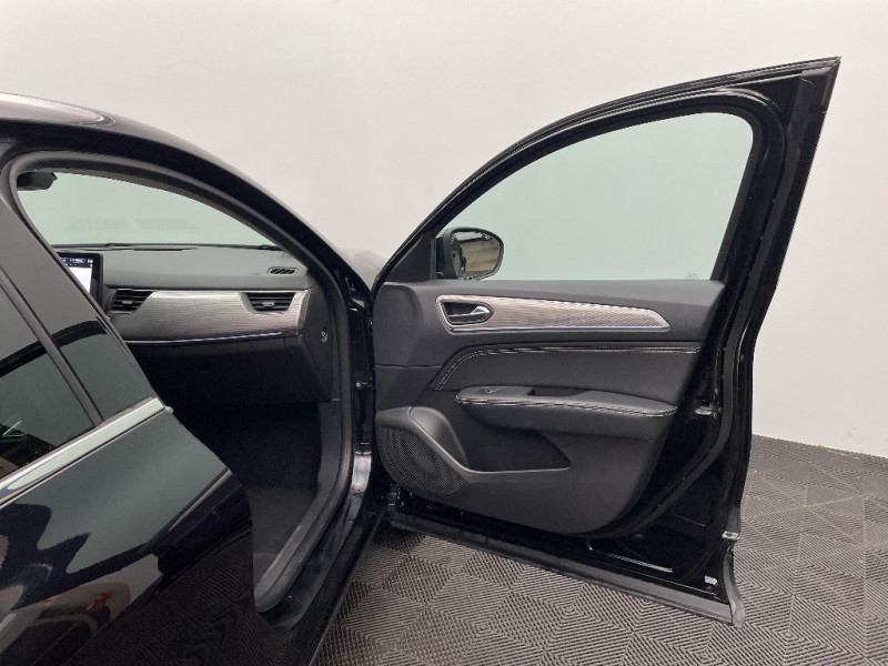 Rétroviseur intérieur électrochrome / Coques de rétroviseurs ton caisse / Indicateur de changement de vitesse / Eclairage d'ambiance / Alerte Distance Sécurité / Alerte d'oubli de ceinture de sécurité / Banquette AR avec accoudoir central / Compartimentage de coffre / Commutation automatique des feux de route/croisement / Kit de gonflage et de réparation des pneumatiques / Harmonie foncé / Système ISOFIX (i-Size) aux places latérales AR et passager AV / Carte Renault avec accès et démarrage mains libres avec fermeture à l'éloignement / Renault Multi-sense / Alerte de survitesse combinéà la vitesse limite de la navigation / Allumage automatique des phares et des essuis-glace avec capteur de pluie et de luminosité / Avertisseur de sortie de stationnement / Feux de jour à LED avec signature lumineuse C-Shape / Programme eco mode / Aérateurs aux places AR / Lève-vitres AR électriques avec fonction anti-pincement / Purificateur d'air / Jantes alliage 18" Pasadena diamantées noires / Freinage actif d'urgence avec détection piétons et cyclistes / Bouton d'appel d'urgence R-Call / Volant cuir pleine fleur / Boitier connect AIVC / Projecteurs AV full LED Pure Vision / Sellerie similicuir-tissu Noir Titane / Easy link avec écran tactile 9.3", navigation, réplication smartphone, Bluetooth / Système ISOFIX (i-Size) aux places AR (latérales) / Tableau de bord avec écran numérique couleur 7''
