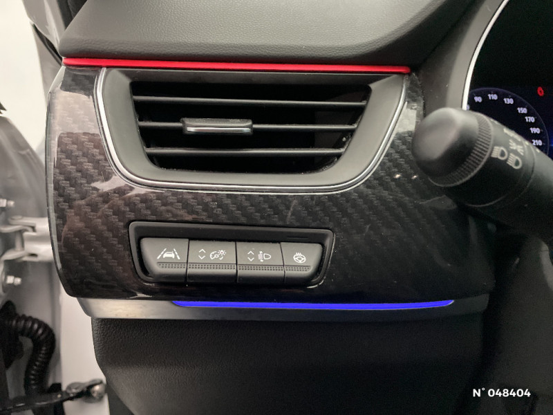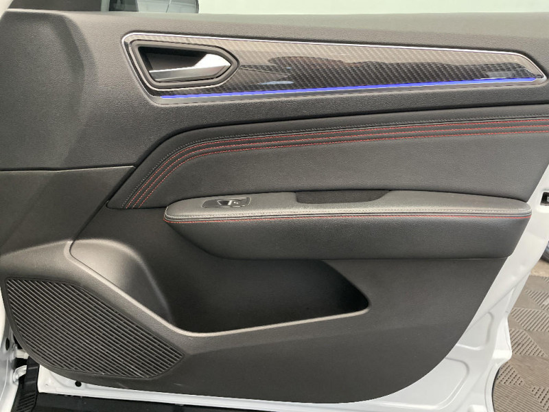 Coques de rétroviseurs extérieures noires (avec Toit Noir) / Bouton d'appel d'urgence R-Call / Sellerie mixte cuir-suédine surpiqués rouge / Signature R.S. Line / Volant cuir pleine fleur / Boitier connect AIVC / Système multimédia EASY LINK avec écran tactile 9,3", navigation, Bluetooth / Tableau de bord avec écran numérique couleur 7'' / Jantes alliage 18" Silverstone diamantées exclusives R.S. Line avec insert Rouge / Easy link avec écran tactile 9.3", navigation, réplication smartphone, Bluetooth / Système ISOFIX (i-Size) aux places AR (latérales) / Projecteurs AV full LED Pure Vision / Easy Park Assist / Indicateur de changement de vitesse / Eclairage d'ambiance / Alerte Distance Sécurité / Alerte d'oubli de ceinture de sécurité / Volant chauffant / Banquette AR avec accoudoir central / Compartimentage de coffre / Commutation automatique des feux de route/croisement / Kit de gonflage et de réparation des pneumatiques / Harmonie foncé / Système ISOFIX (i-Size) aux places latérales AR et passager AV / Design exterieur RS-Line / Design intérieur RS-Line / Carte Renault avec accès et démarrage mains libres avec fermeture à l'éloignement / Renault Multi-sense / Alerte de survitesse combinéà la vitesse limite de la navigation / Allumage automatique des phares et des essuis-glace avec capteur de pluie et de luminosité / Avertisseur de sortie de stationnement / Détection d'obstacle latérale / Feux de jour à LED avec signature lumineuse C-Shape / Programme eco mode / Rétroviseur intérieur électrochrome sans contour / Aérateurs aux places AR / Lève-vitres AR électriques avec fonction anti-pincement / Purificateur d'air / Freinage actif d'urgence avec détection piétons et cyclistes