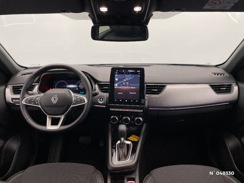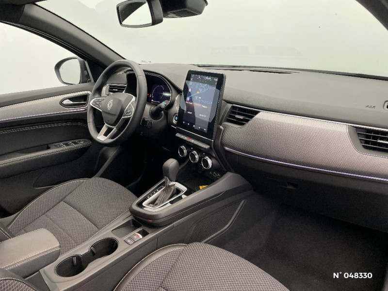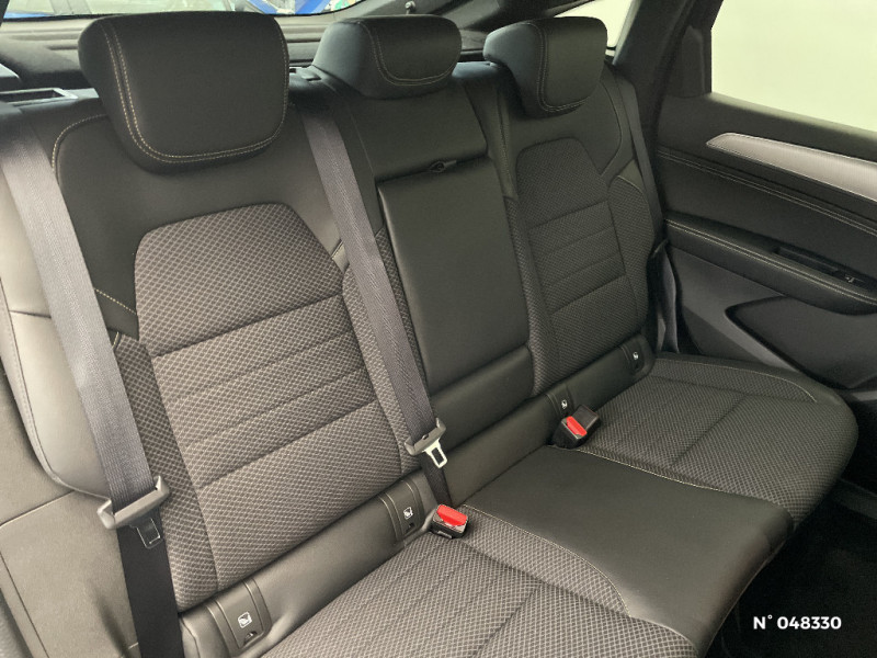 Allumage automatique des phares et des essuis-glace avec capteur de pluie et de luminosité / Avertisseur de sortie de stationnement / Feux de jour à LED avec signature lumineuse C-Shape / Programme eco mode / Système ISOFIX (i-Size) aux places AR (latérales) / Frein de parking électrique avec fonction Auto-Hold / Tableau de bord avec écran numérique et personnalisable 10" / Projecteurs AV LED pure vision / Coques de rétroviseurs extérieures noires / Carte Renault avec accès et démarrage mains libres avec fermeture à l'éloignement / Sans rangement de coffre / Volant non chauffant / Aérateurs aux places AR / Lève-vitres AR électriques avec fonction anti-pincement / Purificateur d'air / Freinage actif d'urgence avec détection piétons et cyclistes / Bouton d'appel d'urgence R-Call / Boitier connect AIVC / Ciel de toit noir / Jantes alliage 17'' Bahamas gris pyrite / Jantes alliage 18'' Silverstone diamantées / Sellerie textile enduit grainé - tissu noir / Plancher de coffre amovible / Système multimédia easy link connecté avec écran tactile 9,3, radio DAB, navigation embarquée / Alerte détection de fatigue / Prédisposition éthylotest / Lame métallique sur bouclier AV inspirée de l'univers de la Formule 1 / Détection intelligente des limitations de vitesse et prévention survitesse / My Safety switch (raccourci vers configuration personnalisée des aides à la conduite) / Sans centrage dans la voie / Boîte de vitesse automatique 4 rapports / Rétroviseur intérieur électrochrome / Indicateur de changement de vitesse / Eclairage d'ambiance / Alerte Distance Sécurité / Banquette AR avec accoudoir central / Projecteurs AV full LED Pure Vision / Kit de gonflage et de réparation des pneumatiques / Harmonie foncé / Commutation automatique des feux de route/croisement / Renault Multi-sense