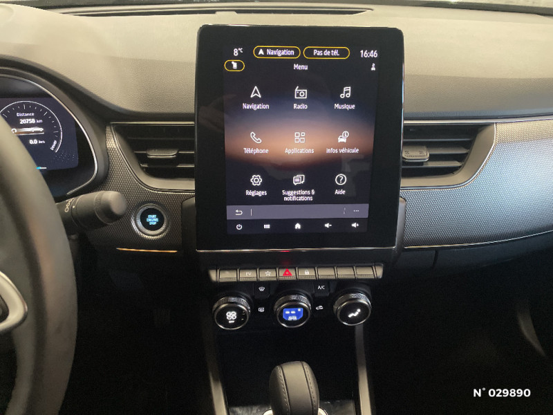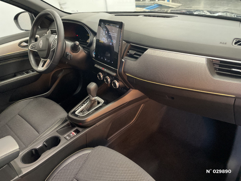 Banquette AR avec accoudoir central / Coques de rétroviseurs extérieures noires / Ciel de toit noir / Jantes alliage 17'' Bahamas gris pyrite / Jantes alliage 18'' Silverstone diamantées / Sellerie textile enduit grainé - tissu noir / Plancher de coffre amovible / Système multimédia easy link connecté avec écran tactile 9,3, radio DAB, navigation embarquée / Alerte détection de fatigue / Prédisposition éthylotest / Lame métallique sur bouclier AV inspirée de l'univers de la Formule 1 / Détection intelligente des limitations de vitesse et prévention survitesse / My Safety switch (raccourci vers configuration personnalisée des aides à la conduite) / Sans centrage dans la voie / Boîte de vitesse automatique 4 rapports / Sans rangement de coffre / Volant non chauffant / Système ISOFIX (i-Size) aux places AR (latérales) / Frein de parking électrique avec fonction Auto-Hold / Tableau de bord avec écran numérique et personnalisable 10" / Projecteurs AV LED pure vision / Programme eco mode / Aérateurs aux places AR / Lève-vitres AR électriques avec fonction anti-pincement / Purificateur d'air / Freinage actif d'urgence avec détection piétons et cyclistes / Bouton d'appel d'urgence R-Call / Boitier connect AIVC / Carte Renault avec accès et démarrage mains libres avec fermeture à l'éloignement / Projecteurs AV full LED Pure Vision / Kit de gonflage et de réparation des pneumatiques / Harmonie foncé / Commutation automatique des feux de route/croisement / Renault Multi-sense / Allumage automatique des phares et des essuis-glace avec capteur de pluie et de luminosité / Avertisseur de sortie de stationnement / Feux de jour à LED avec signature lumineuse C-Shape / Indicateur de changement de vitesse / Eclairage d'ambiance / Alerte Distance Sécurité / Rétroviseur intérieur électrochrome