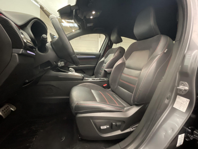 Système ISOFIX (i-Size) aux places AR (latérales) / Système ISOFIX (i-Size) aux places latérales AR et passager AV / Système multimédia EASY LINK avec écran tactile 9,3", navigation, Bluetooth / Tableau de bord avec écran numérique couleur 7'' / Volant chauffant / Volant cuir pleine fleur / Bouton d'appel d'urgence R-Call / Carte Renault avec accès et démarrage mains libres avec fermeture à l'éloignement / Cartographie France / Cartographie Standard / Commutation automatique des feux de route/croisement / Compartimentage de coffre / Compartimentage de coffre / Coques de rétroviseurs extérieures noires (avec Toit Noir) / Design exterieur RS-Line / Design intérieur RS-Line / Détection d'obstacle latérale / Easy link avec écran tactile 9.3", navigation, réplication smartphone, Bluetooth / Easy Park Assist / Eclairage d'ambiance / Feux de jour à LED avec signature lumineuse C-Shape / Freinage actif d'urgence avec détection piétons et cyclistes / Harmonie intérieure foncée / Indicateur de changement de vitesse / Jantes alliage 18" Silverstone diamantées exclusives R.S. Line avec insert Rouge / Kit de gonflage et de réparation des pneumatiques / Lève-vitres AR électriques avec fonction anti-pincement / Monte banalisée / Pneu standard / Programme eco mode / Projecteurs AV full LED Pure Vision / Purificateur d'air / Renault Multi-sense / Rétroviseur intérieur électrochrome sans contour / Sellerie mixte cuir-suédine surpiqués rouge / Aérateurs aux places AR / Alerte collision AR et freinage actif d'urgence AR piéton / Alerte de distance de sécurité / Alerte de survitesse combinéà la vitesse limite de la navigation / Alerte d'oubli de ceinture de sécurité / Allumage automatique des phares et des essuis-glace avec capteur de pluie et de luminosité / Appellation Renault / Avertisseur de sortie de stationnement / Banquette AR avec accoudoir central / Boite de vitesse E shifter / Boitier connect AIVC / Signature R.S. Line
