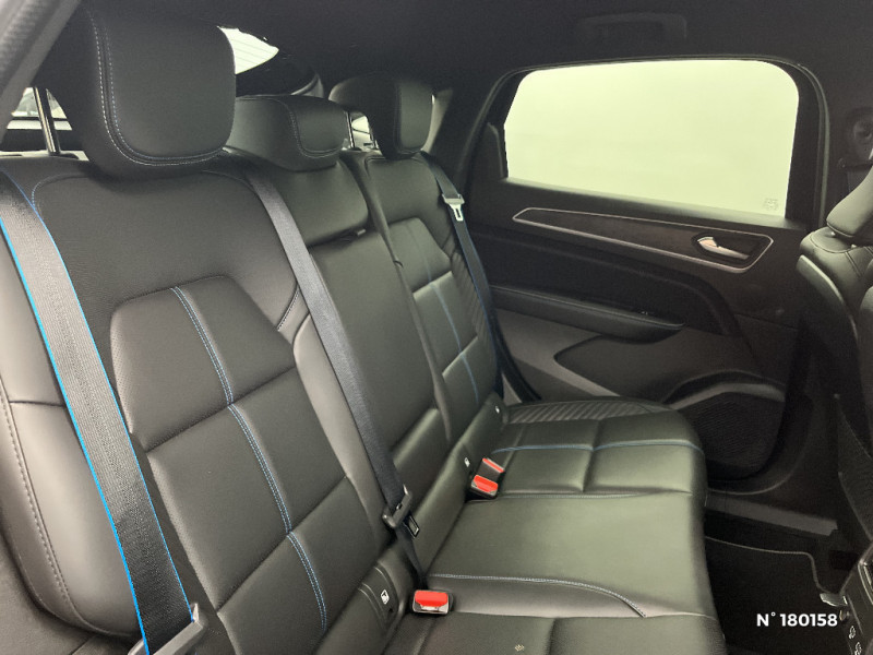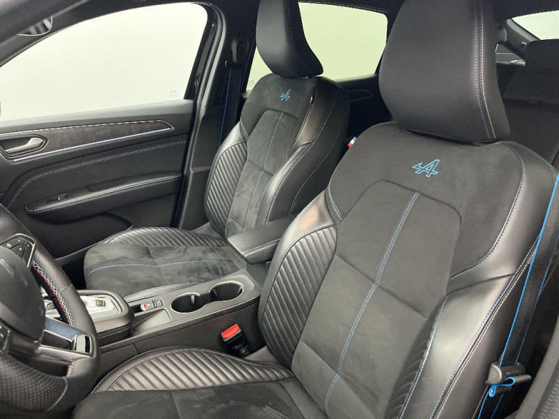 Système multimédia easy link connecté avec écran tactile 9,3, radio DAB, navigation embarquée / Tableau de bord avec écran numérique et personnalisable 10" / Volant textile enduit grainé perforé chauffant / Rétroviseur intérieur électrochrome sans contour / Alerte de distance de sécurité / Alerte détection de fatigue / Allumage automatique des phares et des essuis-glace avec capteur de pluie et de luminosité / Avertisseur de sortie de stationnement / Banquette AR avec accoudoir central / Boîte de vitesse hybride multimode 6 rapports / Boitier connect AIVC / Bouton d'appel d'urgence R-Call / Carte Renault avec accès et démarrage mains libres avec fermeture à l'éloignement / Centrage dans la voie / Ciel de toit noir / Commutation automatique des feux de route/croisement / Console centrale avec levier de vitesse e-shifter / Coques de rétroviseurs extérieures noires / Design esprit Alpine extérieur / Design esprit Alpine intérieur / Détection intelligente des limitations de vitesse et prévention survitesse / Double canule d'échappement noir brillant / Eclairage d'ambiance / Feux de jour à LED avec signature lumineuse C-Shape / Frein de parking électrique avec fonction Auto-Hold / Freinage actif d'urgence avec détection piétons et cyclistes / Harmonie intérieure foncée / Indicateur de changement de vitesse / Kit de gonflage et de réparation des pneumatiques / Lame métallique sur bouclier AV inspirée de l'univers de la Formule 1 / Lève-vitres AR électriques avec fonction anti-pincement / My Safety switch (raccourci vers configuration personnalisée des aides à la conduite) / Plancher de coffre amovible / Aérateurs aux places AR / Pneus spécifiques Jantes alliage diamantées gris et noir 19" elixir / Prédisposition éthylotest / Programme eco mode / Projecteurs AV full LED Pure Vision / Purificateur d'air / Renault Multi-sense / Sellerie mixte textile enduit grainé - suédine avec surpiqures esprit Alpine / Sièges AV électriques avec réglage en hauteur, siège conducteur avec réglage lombaire / Système ISOFIX (i-Size) aux places AR (latérales)