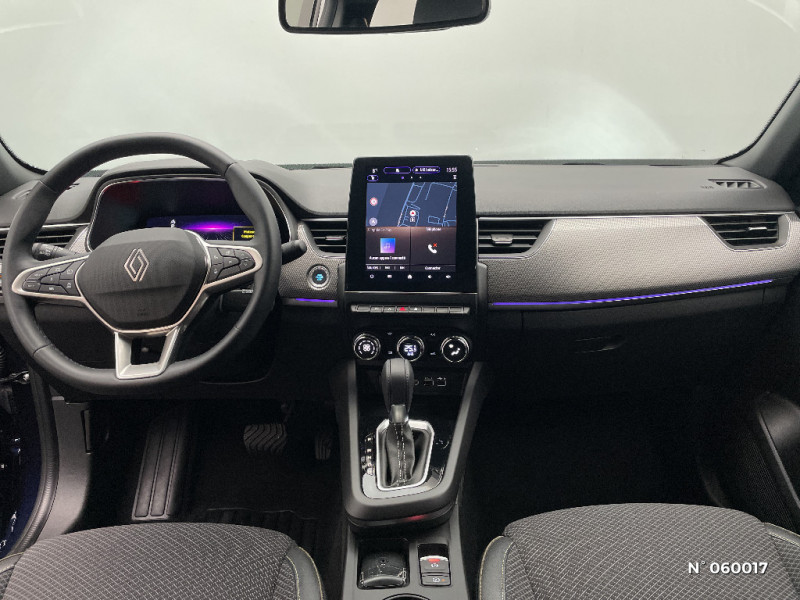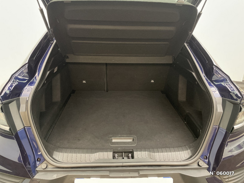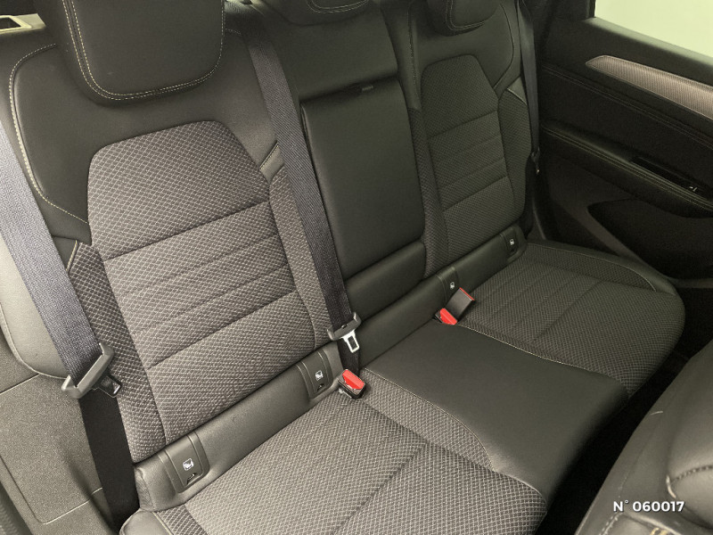 Carte Renault avec accès et démarrage mains libres avec fermeture à l'éloignement / Sans rangement de coffre / Volant non chauffant / Système ISOFIX (i-Size) aux places AR (latérales) / Frein de parking électrique avec fonction Auto-Hold / Tableau de bord avec écran numérique et personnalisable 10" / Projecteurs AV LED pure vision / Coques de rétroviseurs extérieures noires / Ciel de toit noir / Jantes alliage 17'' Bahamas gris pyrite / Jantes alliage 18'' Silverstone diamantées / Sellerie textile enduit grainé - tissu noir / Alerte détection de fatigue / Prédisposition éthylotest / Lame métallique sur bouclier AV inspirée de l'univers de la Formule 1 / Détection intelligente des limitations de vitesse et prévention survitesse / My Safety switch (raccourci vers configuration personnalisée des aides à la conduite) / Sans centrage dans la voie / Boîte de vitesse automatique 4 rapports / Plancher de coffre amovible / Système multimédia easy link connecté avec écran tactile 9,3, radio DAB, navigation embarquée / Indicateur de changement de vitesse / Eclairage d'ambiance / Alerte Distance Sécurité / Banquette AR avec accoudoir central / Kit de gonflage et de réparation des pneumatiques / Harmonie foncé / Commutation automatique des feux de route/croisement / Renault Multi-sense / Allumage automatique des phares et des essuis-glace avec capteur de pluie et de luminosité / Avertisseur de sortie de stationnement / Feux de jour à LED avec signature lumineuse C-Shape / Programme eco mode / Aérateurs aux places AR / Lève-vitres AR électriques avec fonction anti-pincement / Purificateur d'air / Freinage actif d'urgence avec détection piétons et cyclistes / Bouton d'appel d'urgence R-Call / Boitier connect AIVC / Projecteurs AV full LED Pure Vision / Rétroviseur intérieur électrochrome