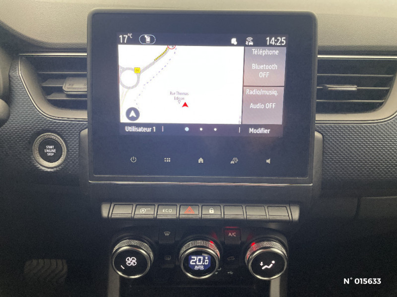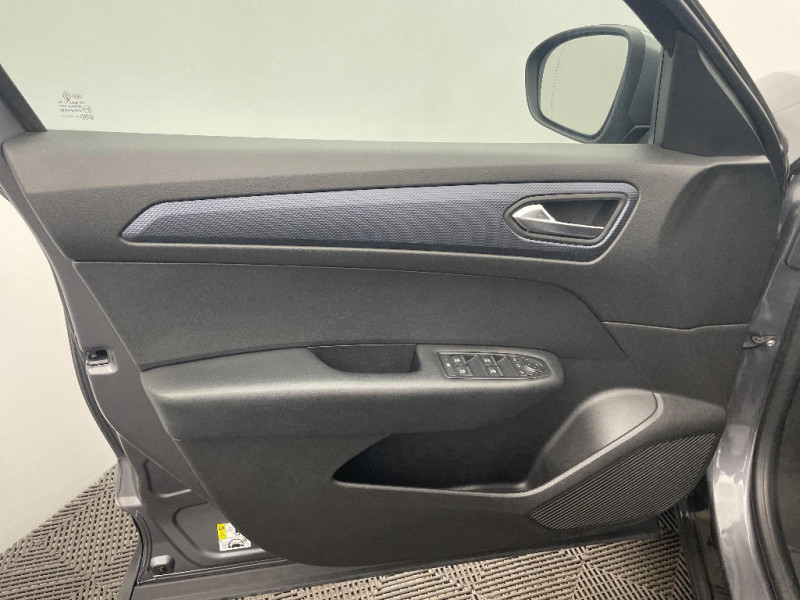 Commutation automatique des feux de route/croisement / Kit de gonflage et de réparation des pneumatiques / Harmonie foncé / Carte Renault avec accès et démarrage mains libres avec fermeture à l'éloignement / Allumage automatique des phares et des essuis-glace avec capteur de pluie et de luminosité / Feux de jour à LED avec signature lumineuse C-Shape / Programme eco mode / Coques de rétroviseurs ton caisse / Lève-vitres AR électriques avec fonction anti-pincement / Purificateur d'air / Freinage actif d'urgence avec détection piétons et cyclistes / Bouton d'appel d'urgence R-Call / Sellerie tissu Noir Titane / Volant gainé en similicuir Soft Touch / Boitier connect AIVC / Navigation embarquée avec cartographie Europe / Tableau de bord avec écran couleur 4,2'' et compteurs analogiques / Système ISOFIX (i-Size) aux places AR (latérales) / Alerte de survitesse combinéà la vitesse limite de la navigation / Compatibilité Apple CarPlay Wifi / Jantes alliage 17" Bahamas diamantées noires / Indicateur de changement de vitesse / Aérateurs aux places AR / Alerte Distance Sécurité / Alerte d'oubli de ceinture de sécurité / Compartimentage de coffre / Projecteurs AV full LED Pure Vision