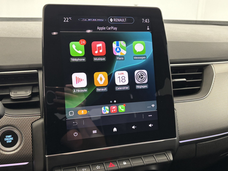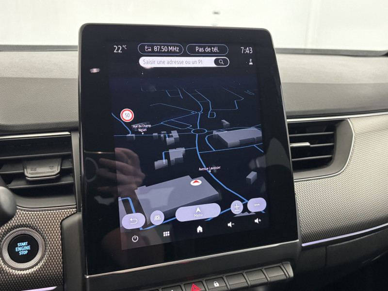 Aérateurs aux places AR / Alerte de distance de sécurité / Alerte de survitesse combinéà la vitesse limite de la navigation / Alerte d'oubli de ceinture de sécurité / Allumage automatique des phares et des essuis-glace avec capteur de pluie et de luminosité / Avertisseur de sortie de stationnement / Banquette AR avec accoudoir central / Boitier connect AIVC / Bouton d'appel d'urgence R-Call / Carte Renault avec accès et démarrage mains libres avec fermeture à l'éloignement / Commutation automatique des feux de route/croisement / Compartimentage de coffre / Compartimentage de coffre / Coques de rétroviseurs extérieures ton caisse / Easy link avec écran tactile 9.3", navigation, réplication smartphone, Bluetooth / Eclairage d'ambiance / Feux de jour à LED avec signature lumineuse C-Shape / Freinage actif d'urgence avec détection piétons et cyclistes / Harmonie intérieure foncée / Indicateur de changement de vitesse / Jantes alliage 18" Pasadena diamantées noires / Kit de gonflage et de réparation des pneumatiques / Lève-vitres AR électriques avec fonction anti-pincement / Programme eco mode / Projecteurs AV full LED Pure Vision / Purificateur d'air / Renault Multi-sense / Rétroviseur intérieur électrochrome / Sellerie textile enduit grainé-tissu Noir Titane / Système ISOFIX (i-Size) aux places AR (latérales) / Tableau de bord avec écran numérique couleur 7'' / Volant cuir pleine fleur /
