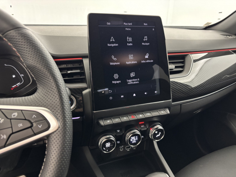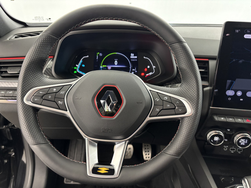 Aérateurs aux places AR / Alerte de distance de sécurité / Alerte de survitesse combinéà la vitesse limite de la navigation / Alerte d'oubli de ceinture de sécurité / Allumage automatique des phares et des essuis-glace avec capteur de pluie et de luminosité / Avertisseur de sortie de stationnement / Banquette AR avec accoudoir central / Boite de vitesse E shifter / Boitier connect AIVC / Bouton d'appel d'urgence R-Call / Carte Renault avec accès et démarrage mains libres avec fermeture à l'éloignement / Commutation automatique des feux de route/croisement / Compartimentage de coffre / Compartimentage de coffre / Coques de rétroviseurs extérieures noires (avec Toit Noir) / Design exterieur RS-Line / Design intérieur RS-Line / Détection d'obstacle latérale / Easy link avec écran tactile 9.3", navigation, réplication smartphone, Bluetooth / Easy Park Assist / Eclairage d'ambiance / Feux de jour à LED avec signature lumineuse C-Shape / Freinage actif d'urgence avec détection piétons et cyclistes / Harmonie intérieure foncée / Indicateur de changement de vitesse / Jantes alliage 18" Silverstone diamantées exclusives R.S. Line avec insert Rouge / Kit de gonflage et de réparation des pneumatiques / Lève-vitres AR électriques avec fonction anti-pincement / Programme eco mode / Projecteurs AV full LED Pure Vision / Purificateur d'air / Renault Multi-sense / Rétroviseur intérieur électrochrome sans contour / Sellerie mixte cuir-suédine surpiqués rouge / Signature R.S. Line / Système ISOFIX (i-Size) aux places AR (latérales) / Tableau de bord avec écran numérique couleur 7'' / Volant chauffant / Volant cuir pleine fleur /