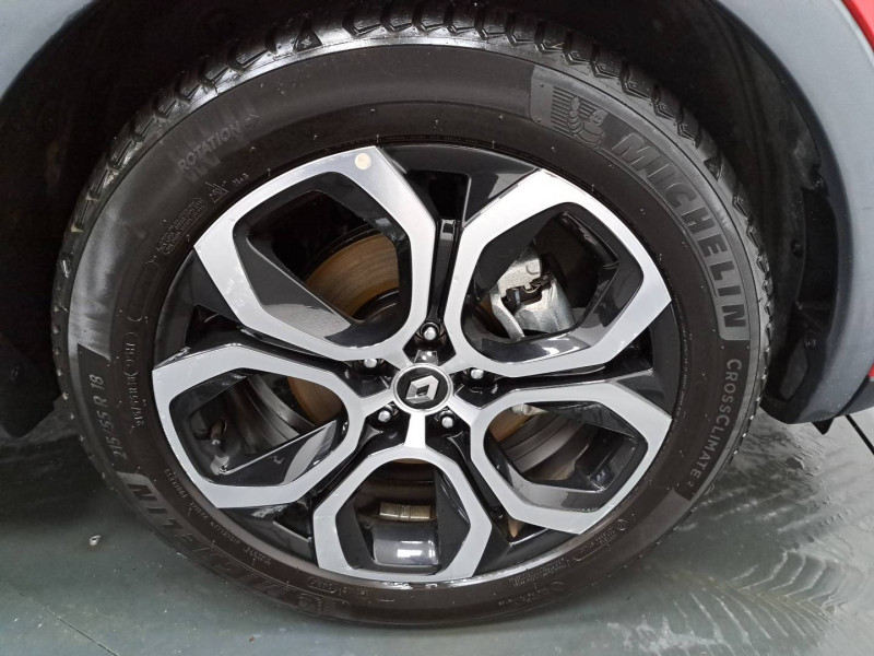Aérateurs aux places AR / Alerte de distance de sécurité / Alerte de survitesse combinéà la vitesse limite de la navigation / Alerte d'oubli de ceinture de sécurité / Allumage automatique des phares et des essuis-glace avec capteur de pluie et de luminosité / Avertisseur de sortie de stationnement / Banquette AR avec accoudoir central / Boitier connect AIVC / Bouton d'appel d'urgence R-Call / Carte Renault avec accès et démarrage mains libres avec fermeture à l'éloignement / Commutation automatique des feux de route/croisement / Compartimentage de coffre / Compartimentage de coffre / Compatibilité Apple CarPlay Wifi / Coques de rétroviseurs extérieures ton caisse / Easy link avec écran tactile 9.3", navigation, réplication smartphone, Bluetooth / Eclairage d'ambiance / Feux de jour à LED avec signature lumineuse C-Shape / Freinage actif d'urgence avec détection piétons et cyclistes / Frein de parking électrique avec fonction Auto-Hold / Harmonie intérieure foncée / Indicateur de changement de vitesse / Jantes alliage 18" Pasadena diamantées noires / Kit de gonflage et de réparation des pneumatiques / Lève-vitres AR électriques avec fonction anti-pincement / Programme eco mode / Projecteurs AV full LED Pure Vision / Purificateur d'air / Réhomologation E-Tech / Renault Multi-sense / Rétroviseur intérieur électrochrome / Sellerie textile enduit grainé-tissu Noir Titane / Système ISOFIX (i-Size) aux places AR (latérales) / Tableau de bord avec écran numérique et personnalisable 10" / Volant gainé en textile enduit grainé Soft Touch
