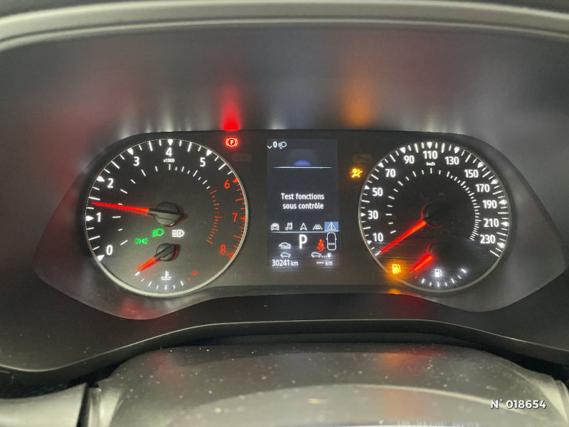Compartimentage de coffre / Projecteurs AV full LED Pure Vision / Commutation automatique des feux de route/croisement / Kit de gonflage et de réparation des pneumatiques / Harmonie foncé / Carte Renault avec accès et démarrage mains libres avec fermeture à l'éloignement / Allumage automatique des phares et des essuis-glace avec capteur de pluie et de luminosité / Feux de jour à LED avec signature lumineuse C-Shape / Programme eco mode / Aérateurs aux places AR / Lève-vitres AR électriques avec fonction anti-pincement / Purificateur d'air / Freinage actif d'urgence avec détection piétons et cyclistes / Bouton d'appel d'urgence R-Call / Sellerie tissu Noir Titane / Volant gainé en similicuir Soft Touch / Boitier connect AIVC / Navigation embarquée avec cartographie Europe / Tableau de bord avec écran couleur 4,2'' et compteurs analogiques / Système ISOFIX (i-Size) aux places AR (latérales) / Alerte de survitesse combinéà la vitesse limite de la navigation / Compatibilité Apple CarPlay Wifi / Jantes alliage 17" Bahamas diamantées noires / Coques de rétroviseurs ton caisse / Indicateur de changement de vitesse / Alerte Distance Sécurité / Alerte d'oubli de ceinture de sécurité