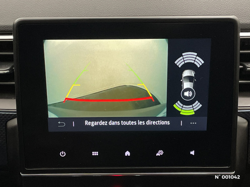 Coques de rétroviseurs ton caisse / Indicateur de changement de vitesse / Alerte Distance Sécurité / Alerte d'oubli de ceinture de sécurité / Programme eco mode / Carte Renault avec accès et démarrage mains libres avec fermeture à l'éloignement / Allumage automatique des phares et des essuis-glace avec capteur de pluie et de luminosité / Feux de jour à LED avec signature lumineuse C-Shape / Aérateurs aux places AR / Compartimentage de coffre / Projecteurs AV full LED Pure Vision / Commutation automatique des feux de route/croisement / Kit de gonflage et de réparation des pneumatiques / Harmonie foncé / Lève-vitres AR électriques avec fonction anti-pincement / Purificateur d'air / Freinage actif d'urgence avec détection piétons et cyclistes / Bouton d'appel d'urgence R-Call / Sellerie tissu Noir Titane / Volant gainé en similicuir Soft Touch / Boitier connect AIVC / Navigation embarquée avec cartographie Europe / Tableau de bord avec écran couleur 4,2'' et compteurs analogiques / Système ISOFIX (i-Size) aux places AR (latérales) / Alerte de survitesse combinéà la vitesse limite de la navigation / Compatibilité Apple CarPlay Wifi / Jantes alliage 17" Bahamas diamantées noires