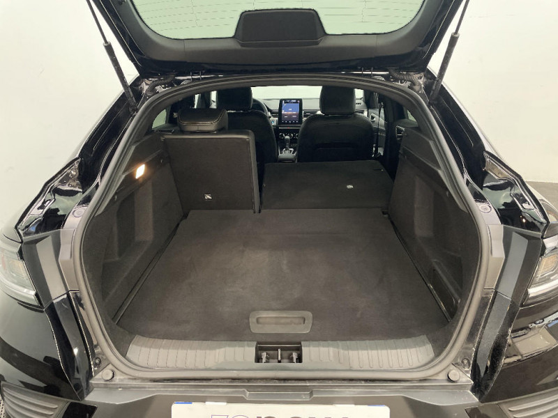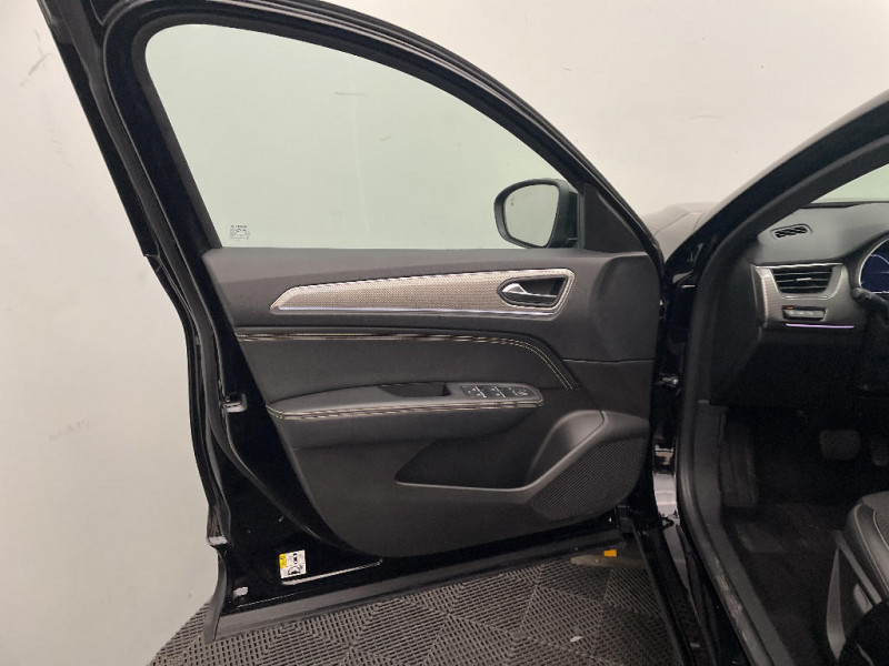 Banquette AR avec accoudoir central / Plancher de coffre amovible / Système multimédia easy link connecté avec écran tactile 9,3, radio DAB, navigation embarquée / Alerte détection de fatigue / Prédisposition éthylotest / Lame métallique sur bouclier AV inspirée de l?univers de la Formule 1 / Détection intelligente des limitations de vitesse et prévention survitesse / My Safety switch (raccourci vers configuration personnalisée des aides à la conduite) / Sans centrage dans la voie / Boîte de vitesse automatique 4 rapports / Feux de jour à LED avec signature lumineuse C-Shape / Programme eco mode / Aérateurs aux places AR / Lève-vitres AR électriques avec fonction anti-pincement / Purificateur d'air / Freinage actif d'urgence avec détection piétons et cyclistes / Bouton d'appel d'urgence R-Call / Boitier connect AIVC / Carte Renault avec accès et démarrage mains libres avec fermeture à l'éloignement / Sans rangement de coffre / Volant non chauffant / Système ISOFIX (i-Size) aux places AR (latérales) / Frein de parking électrique avec fonction Auto-Hold / Tableau de bord avec écran numérique et personnalisable 10" / Projecteurs AV LED pure vision / Coques de rétroviseurs extérieures noires / Ciel de toit noir / Jantes alliage 17?? Bahamas gris pyrite / Jantes alliage 18?? Silverstone diamantées / Sellerie textile enduit grainé - tissu noir / Harmonie foncé / Commutation automatique des feux de route/croisement / Renault Multi-sense / Allumage automatique des phares et des essuis-glace avec capteur de pluie et de luminosité / Avertisseur de sortie de stationnement / Projecteurs AV full LED Pure Vision / Kit de gonflage et de réparation des pneumatiques / Rétroviseur intérieur électrochrome / Indicateur de changement de vitesse / Eclairage d'ambiance / Alerte Distance Sécurité