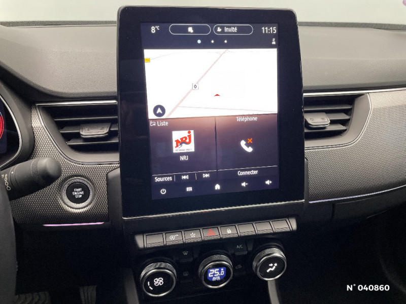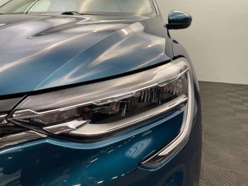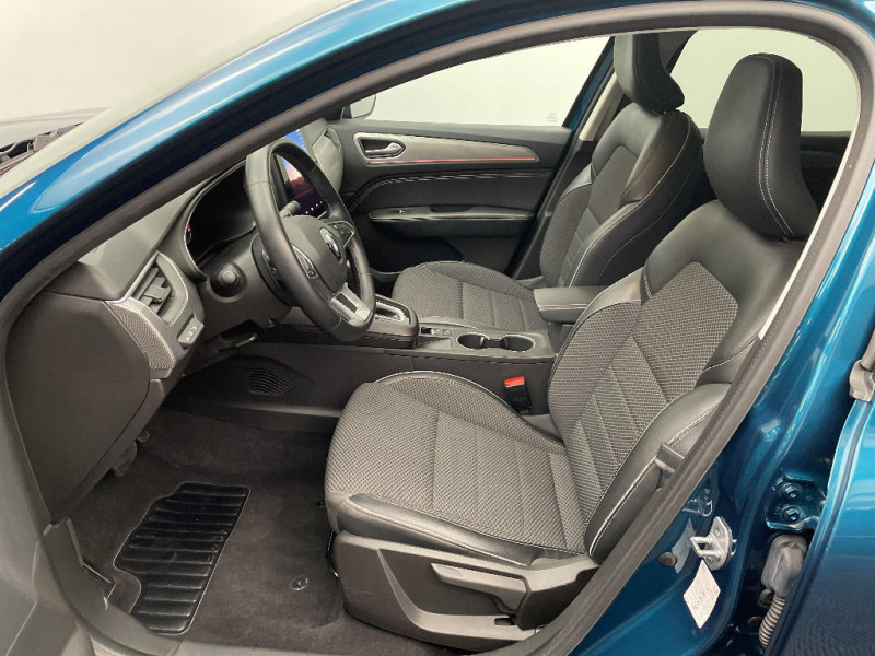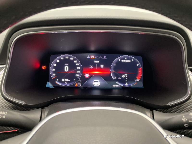 Bouton d'appel d'urgence R-Call / Rétroviseur intérieur électrochrome / Coques de rétroviseurs ton caisse / Indicateur de changement de vitesse / Eclairage d'ambiance / Alerte Distance Sécurité / Alerte d'oubli de ceinture de sécurité / Banquette AR avec accoudoir central / Compartimentage de coffre / Projecteurs AV full LED Pure Vision / Commutation automatique des feux de route/croisement / Kit de gonflage et de réparation des pneumatiques / Harmonie foncé / Carte Renault avec accès et démarrage mains libres avec fermeture à l'éloignement / Renault Multi-sense / Allumage automatique des phares et des essuis-glace avec capteur de pluie et de luminosité / Avertisseur de sortie de stationnement / Lève-vitres AR électriques avec fonction anti-pincement / Purificateur d'air / Freinage actif d'urgence avec détection piétons et cyclistes / Feux de jour à LED avec signature lumineuse C-Shape / Programme eco mode / Aérateurs aux places AR / Volant gainé en similicuir Soft Touch / Boitier connect AIVC / Tableau de bord avec écran numérique et personnalisable 10" / Sellerie similicuir-tissu Noir Titane / Easy link avec écran tactile 9.3", navigation, réplication smartphone, Bluetooth / Système ISOFIX (i-Size) aux places AR (latérales) / Alerte de survitesse combinéà la vitesse limite de la navigation / Compatibilité Apple CarPlay Wifi / Frein de parking électrique avec fonction Auto-Hold / Jantes alliage 18" Pasadena diamantées noires