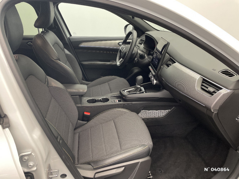 Jantes alliage 18?? Silverstone diamantées / Lame métallique grise sur bouclier avant inspirée de l?univers de la Formule 1 / Sellerie textile enduit grainé - tissu noir / Plancher de coffre amovible / Système multimédia easy link connecté avec écran tactile 9,3, radio DAB, navigation embarquée / Alerte de survitesse combinéà la vitesse limite de la navigation / Freinage actif d'urgence avec détection piétons et cyclistes / Bouton d'appel d'urgence R-Call / Boitier connect AIVC / Carte Renault avec accès et démarrage mains libres avec fermeture à l'éloignement / Sans rangement de coffre / Easy link avec écran tactile 9.3", navigation, réplication smartphone, Bluetooth / Lame métallique sur bouclier AV inspirée de l?univers de la Formule 1 / Système ISOFIX (i-Size) aux places AR (latérales) / Compatibilité Apple CarPlay Wifi / Frein de parking électrique avec fonction Auto-Hold / Tableau de bord avec écran numérique et personnalisable 10" / Ciel de toit noir / Rétroviseur intérieur électrochrome / Coques de rétroviseurs ton caisse / Indicateur de changement de vitesse / Eclairage d'ambiance / Alerte Distance Sécurité / Banquette AR avec accoudoir central / Compartimentage de coffre / Projecteurs AV full LED Pure Vision / Kit de gonflage et de réparation des pneumatiques / Harmonie foncé / Commutation automatique des feux de route/croisement / Renault Multi-sense / Allumage automatique des phares et des essuis-glace avec capteur de pluie et de luminosité / Avertisseur de sortie de stationnement / Feux de jour à LED avec signature lumineuse C-Shape / Programme eco mode / Aérateurs aux places AR / Lève-vitres AR électriques avec fonction anti-pincement / Purificateur d'air