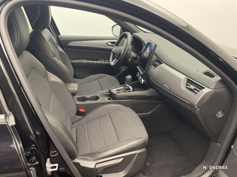 Jantes alliage 18?? Silverstone diamantées / Sellerie textile enduit grainé - tissu noir / Plancher de coffre amovible / Projecteurs AV full LED Pure Vision / Kit de gonflage et de réparation des pneumatiques / Harmonie foncé / Frein de parking électrique avec fonction Auto-Hold / Tableau de bord avec écran numérique et personnalisable 10" / Projecteurs AV LED pure vision / Coques de rétroviseurs extérieures noires / Ciel de toit noir / Carte Renault avec accès et démarrage mains libres avec fermeture à l'éloignement / Sans rangement de coffre / Volant non chauffant / Système ISOFIX (i-Size) aux places AR (latérales) / Système multimédia easy link connecté avec écran tactile 9,3, radio DAB, navigation embarquée / Alerte détection de fatigue / Prédisposition éthylotest / Lame métallique sur bouclier AV inspirée de l?univers de la Formule 1 / Détection intelligente des limitations de vitesse et prévention survitesse / My Safety switch (raccourci vers configuration personnalisée des aides à la conduite) / Sans centrage dans la voie / Boîte de vitesse automatique 4 rapports / Jantes alliage 17?? Bahamas gris pyrite / Commutation automatique des feux de route/croisement / Renault Multi-sense / Allumage automatique des phares et des essuis-glace avec capteur de pluie et de luminosité / Avertisseur de sortie de stationnement / Feux de jour à LED avec signature lumineuse C-Shape / Programme eco mode / Aérateurs aux places AR / Lève-vitres AR électriques avec fonction anti-pincement / Purificateur d'air / Freinage actif d'urgence avec détection piétons et cyclistes / Bouton d'appel d'urgence R-Call / Boitier connect AIVC / Rétroviseur intérieur électrochrome / Indicateur de changement de vitesse / Eclairage d'ambiance / Alerte Distance Sécurité / Banquette AR avec accoudoir central