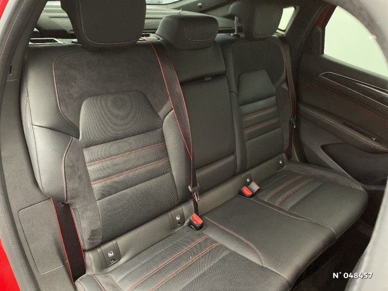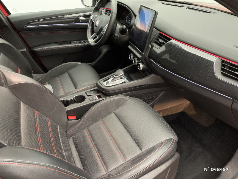 Sellerie mixte cuir-suédine surpiqués rouge / Signature R.S. Line / Volant cuir pleine fleur / Boitier connect AIVC / Cartographie France / Cartographie Standard / Système multimédia EASY LINK avec écran tactile 9,3", navigation, Bluetooth / Jantes alliage 18" Silverstone diamantées exclusives R.S. Line avec insert Rouge / Indicateur de changement de vitesse / Eclairage d'ambiance / Alerte Distance Sécurité / Alerte d'oubli de ceinture de sécurité / Volant chauffant / Banquette AR avec accoudoir central / Compartimentage de coffre / Appellation Renault / Projecteurs AV full LED Pure Vision / Easy Park Assist / Commutation automatique des feux de route/croisement / Tableau de bord avec écran numérique et personnalisable 10" / Kit de gonflage et de réparation des pneumatiques / Harmonie foncé / Système ISOFIX (i-Size) aux places latérales AR et passager AV / Design exterieur RS-Line / Programme eco mode / Design intérieur RS-Line / Pneu standard / Renault Multi-sense / Alerte de survitesse combinéà la vitesse limite de la navigation / Allumage automatique des phares et des essuis-glace avec capteur de pluie et de luminosité / Avertisseur de sortie de stationnement / Boite de vitesse E shifter / Détection d'obstacle latérale / Feux de jour à LED avec signature lumineuse C-Shape / Monte banalisée / Rétroviseur intérieur électrochrome sans contour / Aérateurs aux places AR / Lève-vitres AR électriques avec fonction anti-pincement / Purificateur d'air / Coques de rétroviseurs extérieures noires (avec Toit Noir) / Freinage actif d'urgence avec détection piétons et cyclistes / Bouton d'appel d'urgence R-Call