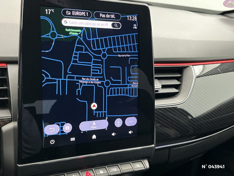 Carte Renault avec accès et démarrage mains libres avec fermeture à l'éloignement / Pneu standard / Renault Multi-sense / Indicateur de changement de vitesse / Eclairage d'ambiance / Alerte Distance Sécurité / Alerte d'oubli de ceinture de sécurité / Volant chauffant / Banquette AR avec accoudoir central / Compartimentage de coffre / Appellation Renault / Projecteurs AV full LED Pure Vision / Easy Park Assist / Commutation automatique des feux de route/croisement / Kit de gonflage et de réparation des pneumatiques / Harmonie foncé / Système ISOFIX (i-Size) aux places latérales AR et passager AV / Tableau de bord avec écran numérique couleur 7'' / Jantes alliage 18" Silverstone diamantées exclusives R.S. Line avec insert Rouge / Easy link avec écran tactile 9.3", navigation, réplication smartphone, Bluetooth / Alerte de survitesse combinéà la vitesse limite de la navigation / Allumage automatique des phares et des essuis-glace avec capteur de pluie et de luminosité / Avertisseur de sortie de stationnement / Boite de vitesse E shifter / Détection d'obstacle latérale / Feux de jour à LED avec signature lumineuse C-Shape / Monte banalisée / Programme eco mode / Rétroviseur intérieur électrochrome sans contour / Aérateurs aux places AR / Lève-vitres AR électriques avec fonction anti-pincement / Purificateur d'air / Coques de rétroviseurs extérieures noires (avec Toit Noir) / Freinage actif d'urgence avec détection piétons et cyclistes / Bouton d'appel d'urgence R-Call / Sellerie mixte cuir-suédine surpiqués rouge / Signature R.S. Line / Volant cuir pleine fleur / Boitier connect AIVC / Cartographie France / Cartographie Standard / Système multimédia EASY LINK avec écran tactile 9,3", navigation, Bluetooth / Design exterieur RS-Line / Design intérieur RS-Line