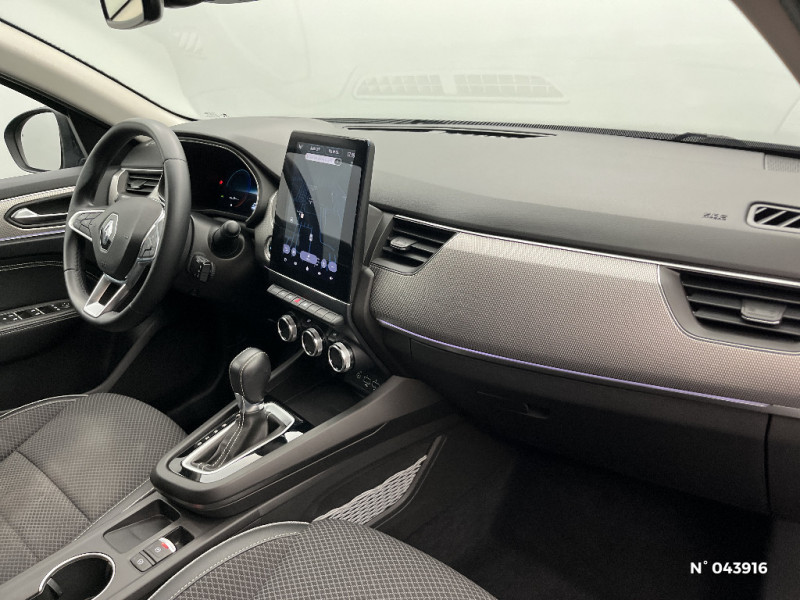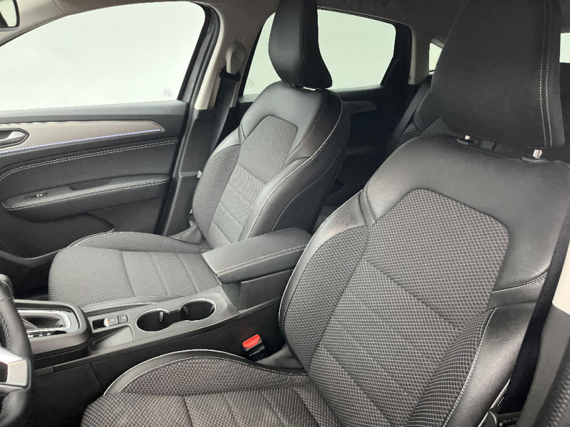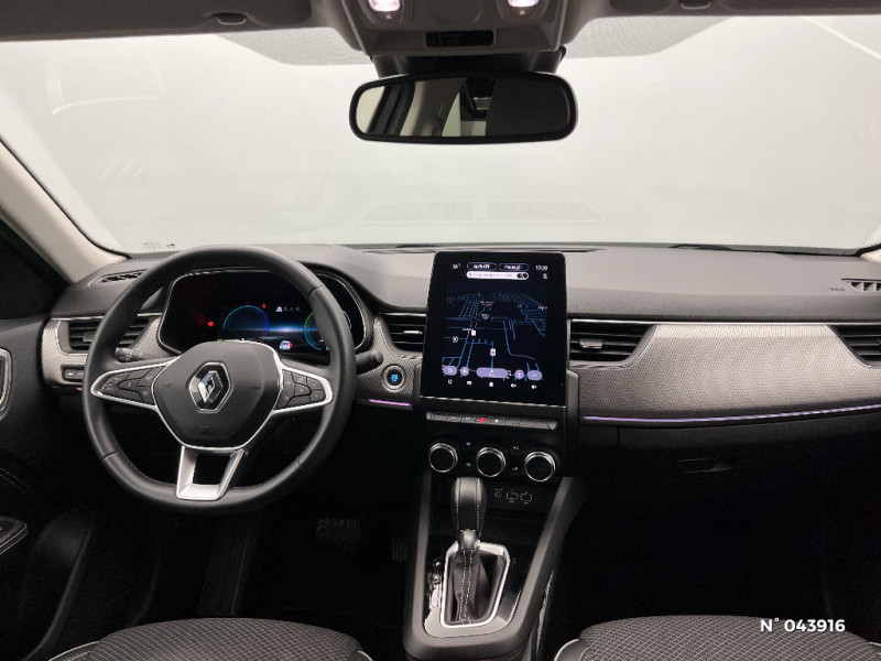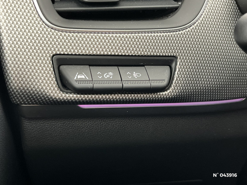 Alerte de survitesse combinéà la vitesse limite de la navigation / Compatibilité Apple CarPlay Wifi / Frein de parking électrique avec fonction Auto-Hold / Feux de jour à LED avec signature lumineuse C-Shape / Volant gainé en similicuir Soft Touch / Boitier connect AIVC / Tableau de bord avec écran numérique et personnalisable 10" / Sellerie similicuir-tissu Noir Titane / Easy link avec écran tactile 9.3", navigation, réplication smartphone, Bluetooth / Réhomologation E-Tech / Volant non chauffant / Système ISOFIX (i-Size) aux places AR (latérales) / Rétroviseur intérieur électrochrome / Coques de rétroviseurs ton caisse / Peinture opaque / Indicateur de changement de vitesse / Eclairage d'ambiance / Alerte Distance Sécurité / Alerte d'oubli de ceinture de sécurité / Banquette AR avec accoudoir central / Compartimentage de coffre / Projecteurs AV full LED Pure Vision / Commutation automatique des feux de route/croisement / Programme eco mode / Aérateurs aux places AR / Lève-vitres AR électriques avec fonction anti-pincement / Purificateur d'air / Jantes alliage 18" Pasadena diamantées noires / Freinage actif d'urgence avec détection piétons et cyclistes / Bouton d'appel d'urgence R-Call / Kit de gonflage et de réparation des pneumatiques / Harmonie foncé / Carte Renault avec accès et démarrage mains libres avec fermeture à l'éloignement / Renault Multi-sense / Allumage automatique des phares et des essuis-glace avec capteur de pluie et de luminosité / Avertisseur de sortie de stationnement