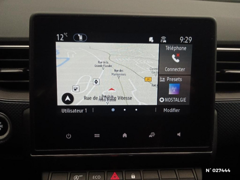 Navigation embarquée avec cartographie Europe / Tableau de bord avec écran couleur 4,2'' et compteurs analogiques / Système ISOFIX (i-Size) aux places AR (latérales) / Alerte de survitesse combinéà la vitesse limite de la navigation / Compatibilité Apple CarPlay Wifi / Projecteurs AV LED pure vision / Jantes alliage 17" Bahamas diamantées noires / Carte Renault avec accès et démarrage mains libres avec fermeture à l'éloignement / Allumage automatique des phares et des essuis-glace avec capteur de pluie et de luminosité / Feux de jour à LED avec signature lumineuse C-Shape / Programme eco mode / Aérateurs aux places AR / Lève-vitres AR électriques avec fonction anti-pincement / Purificateur d'air / Freinage actif d'urgence avec détection piétons et cyclistes / Bouton d'appel d'urgence R-Call / Sellerie tissu Noir Titane / Volant gainé en similicuir Soft Touch / Boitier connect AIVC / Indicateur de changement de vitesse / Alerte Distance Sécurité / Alerte d'oubli de ceinture de sécurité / Compartimentage de coffre / Projecteurs AV full LED Pure Vision / Commutation automatique des feux de route/croisement / Kit de gonflage et de réparation des pneumatiques / Harmonie foncé / Coques de rétroviseurs ton caisse
