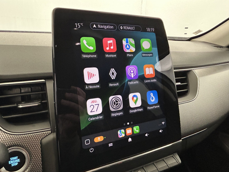 Aérateurs aux places AR / Alerte de distance de sécurité / Alerte de survitesse combinéà la vitesse limite de la navigation / Alerte d'oubli de ceinture de sécurité / Allumage automatique des phares et des essuis-glace avec capteur de pluie et de luminosité / Avertisseur de sortie de stationnement / Banquette AR avec accoudoir central / Boitier connect AIVC / Bouton d'appel d'urgence R-Call / Carte Renault avec accès et démarrage mains libres avec fermeture à l'éloignement / Commutation automatique des feux de route/croisement / Compartimentage de coffre / Compartimentage de coffre / Coques de rétroviseurs extérieures ton caisse / Easy link avec écran tactile 9.3", navigation, réplication smartphone, Bluetooth / Eclairage d'ambiance / Feux de jour à LED avec signature lumineuse C-Shape / Freinage actif d'urgence avec détection piétons et cyclistes / Harmonie intérieure foncée / Indicateur de changement de vitesse / Jantes alliage 18" Pasadena diamantées noires / Kit de gonflage et de réparation des pneumatiques / Lève-vitres AR électriques avec fonction anti-pincement / Programme eco mode / Projecteurs AV full LED Pure Vision / Purificateur d'air / Renault Multi-sense / Rétroviseur intérieur électrochrome / Sellerie textile enduit grainé-tissu Noir Titane / Système ISOFIX (i-Size) aux places AR (latérales) / Tableau de bord avec écran numérique couleur 7'' / Volant cuir pleine fleur /