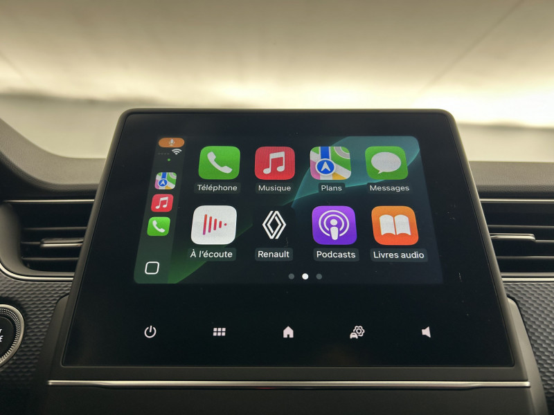Aérateurs aux places AR / Alerte de distance de sécurité / Alerte de survitesse combinéà la vitesse limite de la navigation / Alerte d'oubli de ceinture de sécurité / Allumage automatique des phares et des essuis-glace avec capteur de pluie et de luminosité / Boitier connect AIVC / Bouton d'appel d'urgence R-Call / Carte Renault avec accès et démarrage mains libres avec fermeture à l'éloignement / Commutation automatique des feux de route/croisement / Compartimentage de coffre / Compartimentage de coffre / Compatibilité Apple CarPlay Wifi / Coques de rétroviseurs extérieures ton caisse / Feux de jour à LED avec signature lumineuse C-Shape / Freinage actif d'urgence avec détection piétons et cyclistes / Harmonie intérieure foncée / Indicateur de changement de vitesse / Jantes alliage 17" Bahamas diamantées noires / Kit de gonflage et de réparation des pneumatiques / Lève-vitres AR électriques avec fonction anti-pincement / Navigation embarquée avec cartographie Europe / Programme eco mode / Projecteurs AV full LED Pure Vision / Purificateur d'air / Sellerie tissu Noir Titane / Système ISOFIX (i-Size) aux places AR (latérales) / Tableau de bord avec écran couleur 4,2'' et compteurs analogiques / Volant gainé en textile enduit grainé Soft Touch /