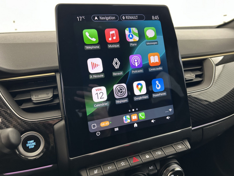 Aérateurs aux places AR / Alerte de distance de sécurité / Alerte de survitesse combinéà la vitesse limite de la navigation / Alerte d'oubli de ceinture de sécurité / Allumage automatique des phares et des essuis-glace avec capteur de pluie et de luminosité / Avertisseur de sortie de stationnement / Banquette AR avec accoudoir central / Boite de vitesse E shifter / Boitier connect AIVC / Bouton d'appel d'urgence R-Call / Carte Renault avec accès et démarrage mains libres avec fermeture à l'éloignement / Commutation automatique des feux de route/croisement / Compartimentage de coffre / Compartimentage de coffre / Compatibilité Apple CarPlay Wifi / Coques de rétroviseurs extérieures noires / Détection d'obstacle latérale / Easy link avec écran tactile 9.3", navigation, réplication smartphone, Bluetooth / Easy Park Assist / Eclairage d'ambiance / Feux de jour à LED avec signature lumineuse C-Shape / Freinage actif d'urgence avec détection piétons et cyclistes / Frein de parking électrique avec fonction Auto-Hold / Harmonie intérieure foncée / Indicateur de changement de vitesse / Jantes alliage 18" silverstone diamantées avec insert gold / Kit de gonflage et de réparation des pneumatiques / Lame F1 Golf / Lève-vitres AR électriques avec fonction anti-pincement / Programme eco mode / Projecteurs AV full LED Pure Vision / Purificateur d'air / Réhomologation E-Tech / Renault Multi-sense / Rétroviseur intérieur électrochrome sans contour / Sellerie cuir/suédine E-Tech engineered avec surpiqûres gold / Système ISOFIX (i-Size) aux places AR (latérales) / Tableau de bord avec écran numérique et personnalisable 10" / Volant chauffant / Volant cuir pleine fleur /