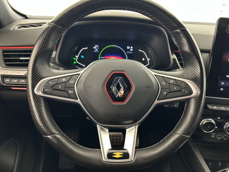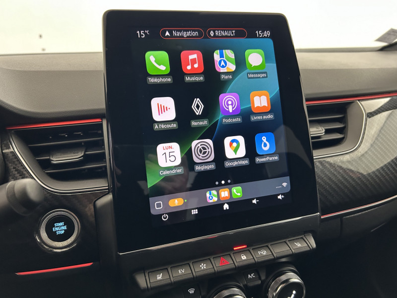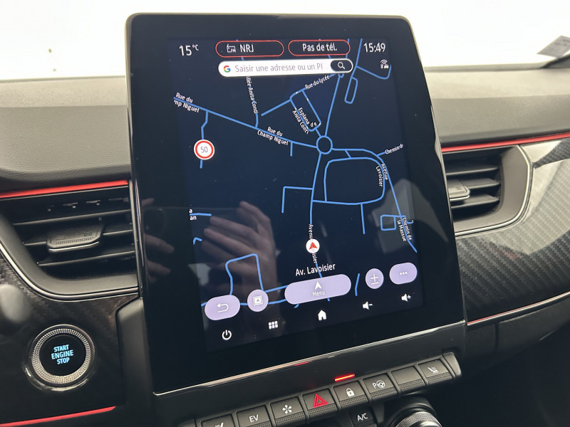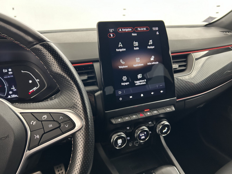 Aérateurs aux places AR / Alerte de distance de sécurité / Alerte de survitesse combinéà la vitesse limite de la navigation / Alerte d'oubli de ceinture de sécurité / Allumage automatique des phares et des essuis-glace avec capteur de pluie et de luminosité / Avertisseur de sortie de stationnement / Banquette AR avec accoudoir central / Boite de vitesse E shifter / Boitier connect AIVC / Bouton d'appel d'urgence R-Call / Carte Renault avec accès et démarrage mains libres avec fermeture à l'éloignement / Commutation automatique des feux de route/croisement / Compartimentage de coffre / Compartimentage de coffre / Coques de rétroviseurs extérieures noires (avec Toit Noir) / Design exterieur RS-Line / Design intérieur RS-Line / Détection d'obstacle latérale / Easy link avec écran tactile 9.3", navigation, réplication smartphone, Bluetooth / Easy Park Assist / Eclairage d'ambiance / Feux de jour à LED avec signature lumineuse C-Shape / Freinage actif d'urgence avec détection piétons et cyclistes / Harmonie intérieure foncée / Indicateur de changement de vitesse / Jantes alliage 18" Silverstone diamantées exclusives R.S. Line avec insert Rouge / Kit de gonflage et de réparation des pneumatiques / Lève-vitres AR électriques avec fonction anti-pincement / Programme eco mode / Projecteurs AV full LED Pure Vision / Purificateur d'air / Renault Multi-sense / Rétroviseur intérieur électrochrome sans contour / Sellerie mixte cuir-suédine surpiqués rouge / Signature R.S. Line / Système ISOFIX (i-Size) aux places AR (latérales) / Tableau de bord avec écran numérique couleur 7'' / Volant chauffant / Volant cuir pleine fleur /